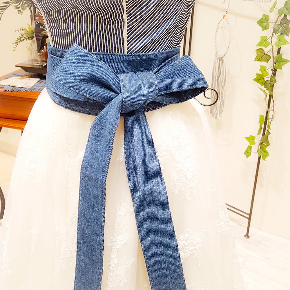 デニムサッシュベルト/マリンブルー 【結婚式 ドレス小物】