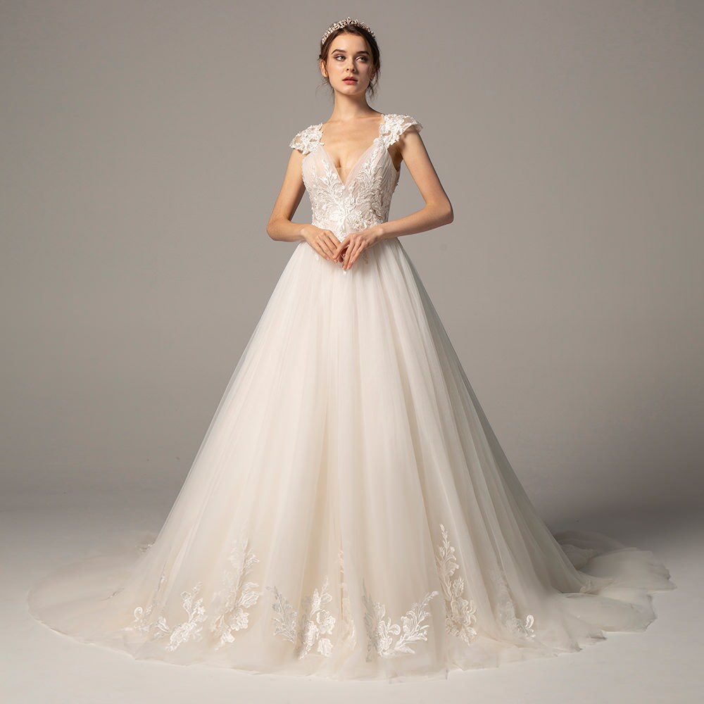 CW2358 OLIVE Vネック 袖 Aライン ウエディングドレス 【ウェディングドレス オーダーメイド】