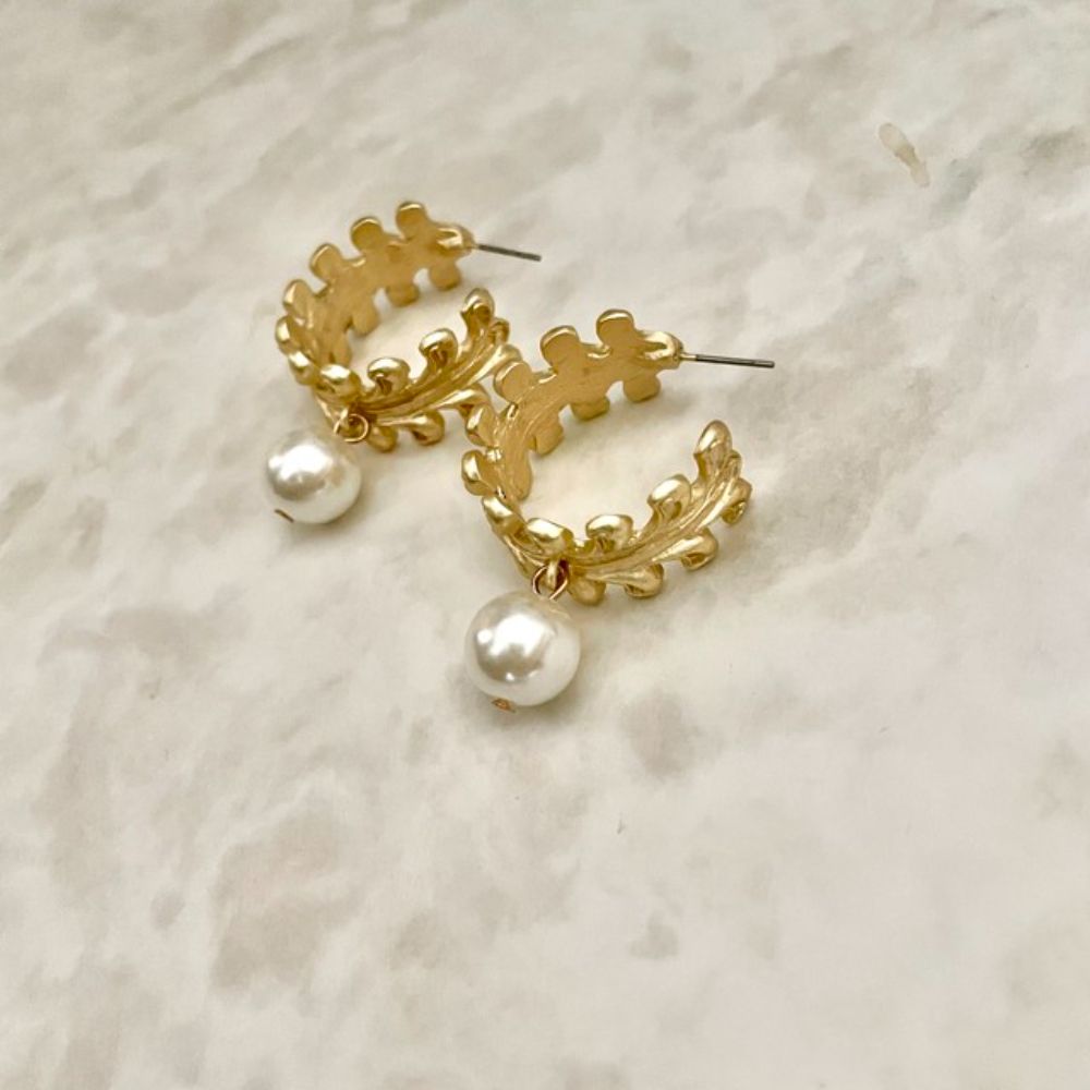ヨーロッパの雰囲気のあるフープにパールがついたピアスです。