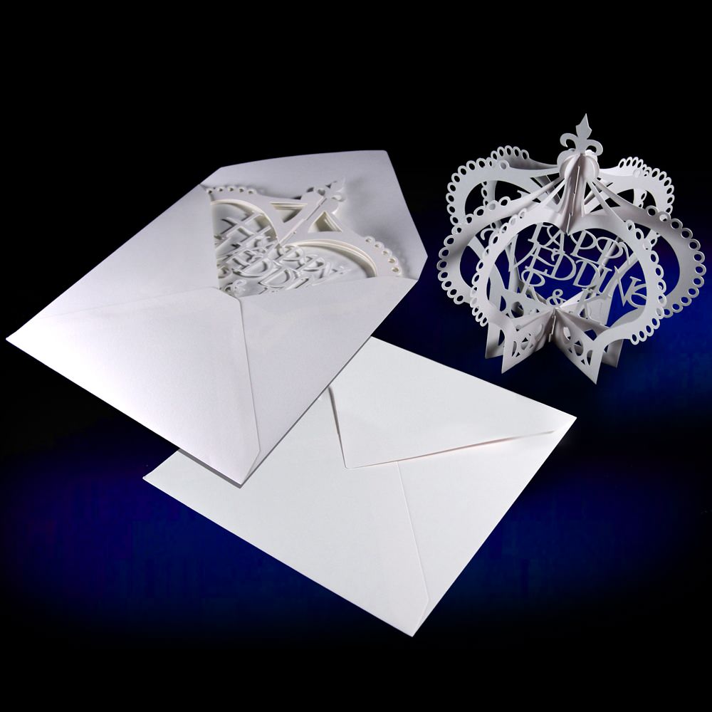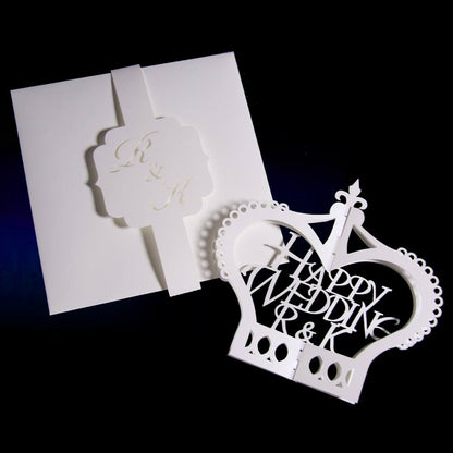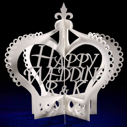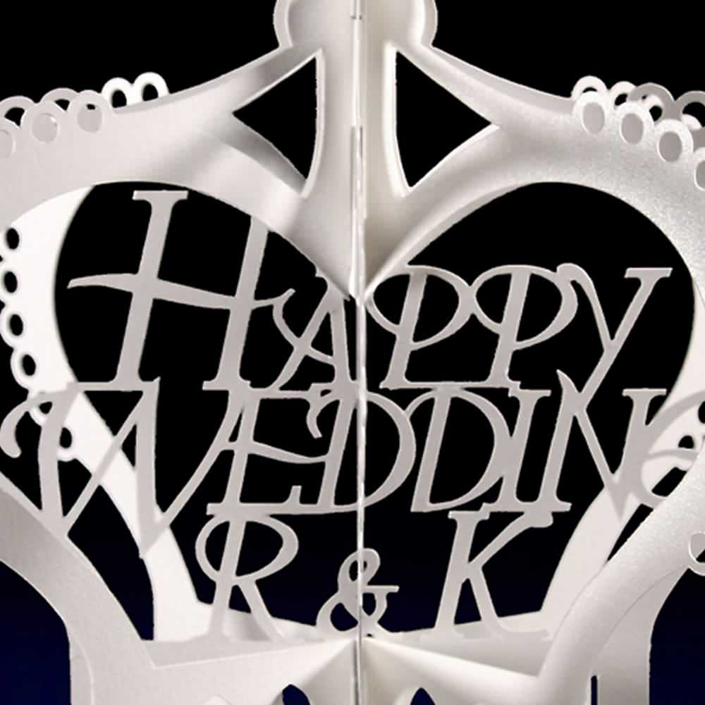 開くと立体的な王冠の形になるポップアップウェディングカード。