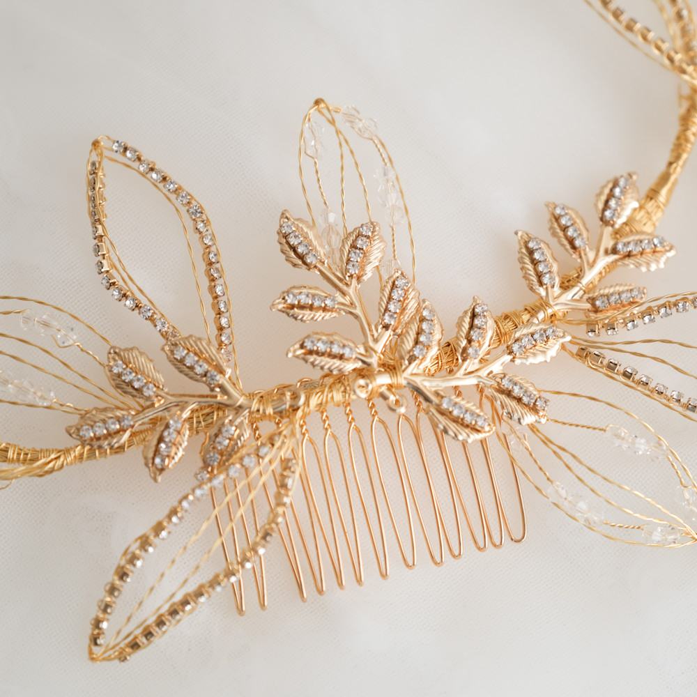 ブライダルヘッドドレス ビジュー リーフ ゴールド q25 【結婚式 ヘアアクセサリー】