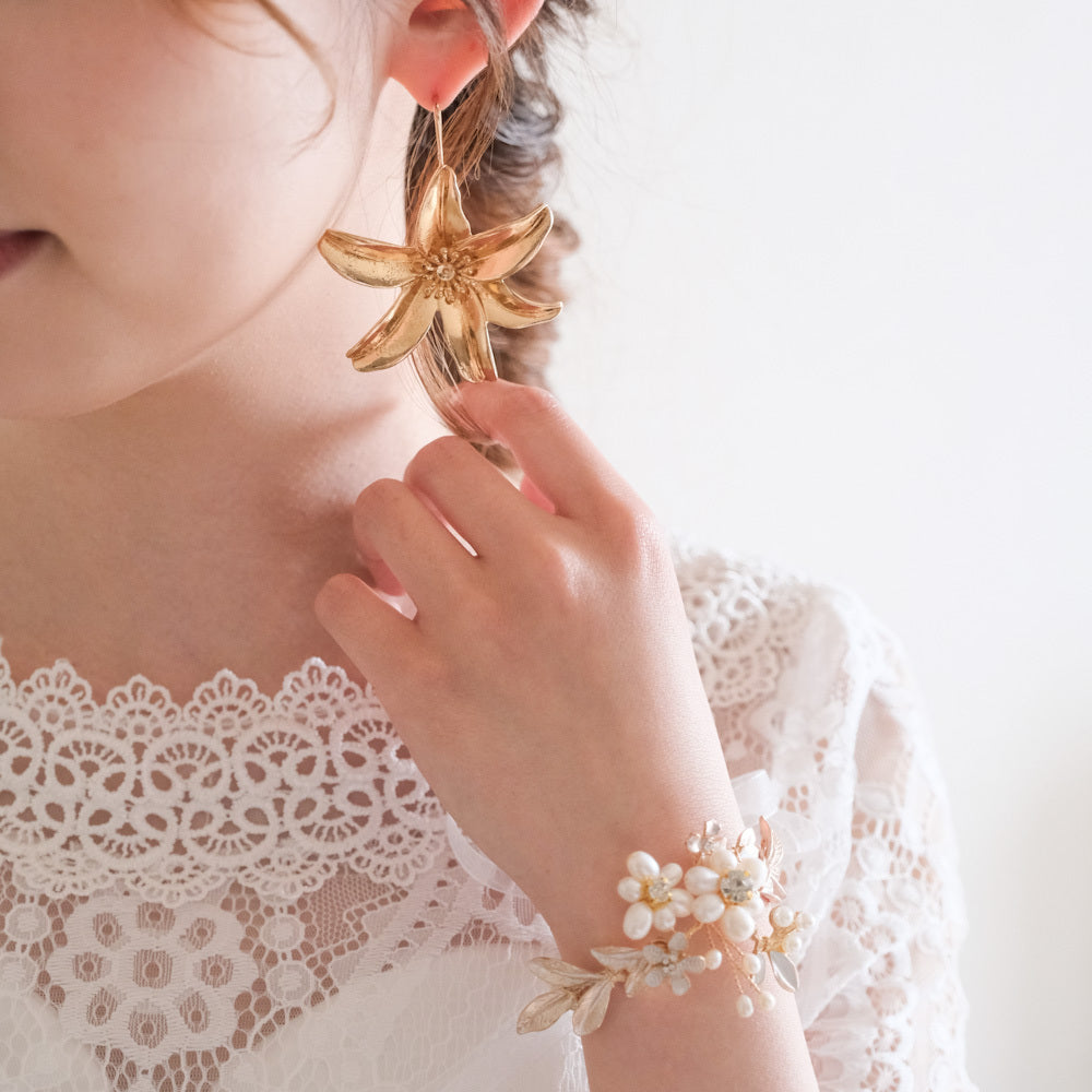 【ピアス】ブライダルピアス アンティークフラワーピアス ゴールド q16 【結婚式 ピアス イヤリング】