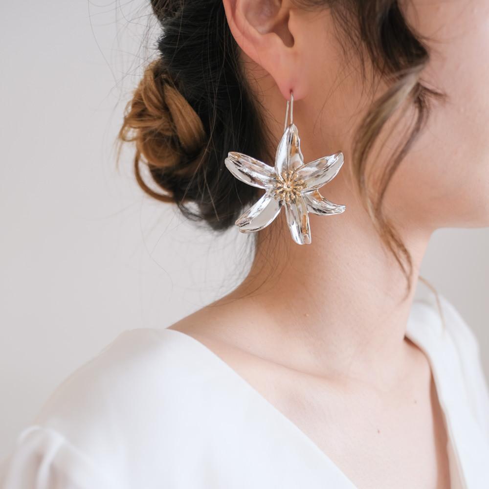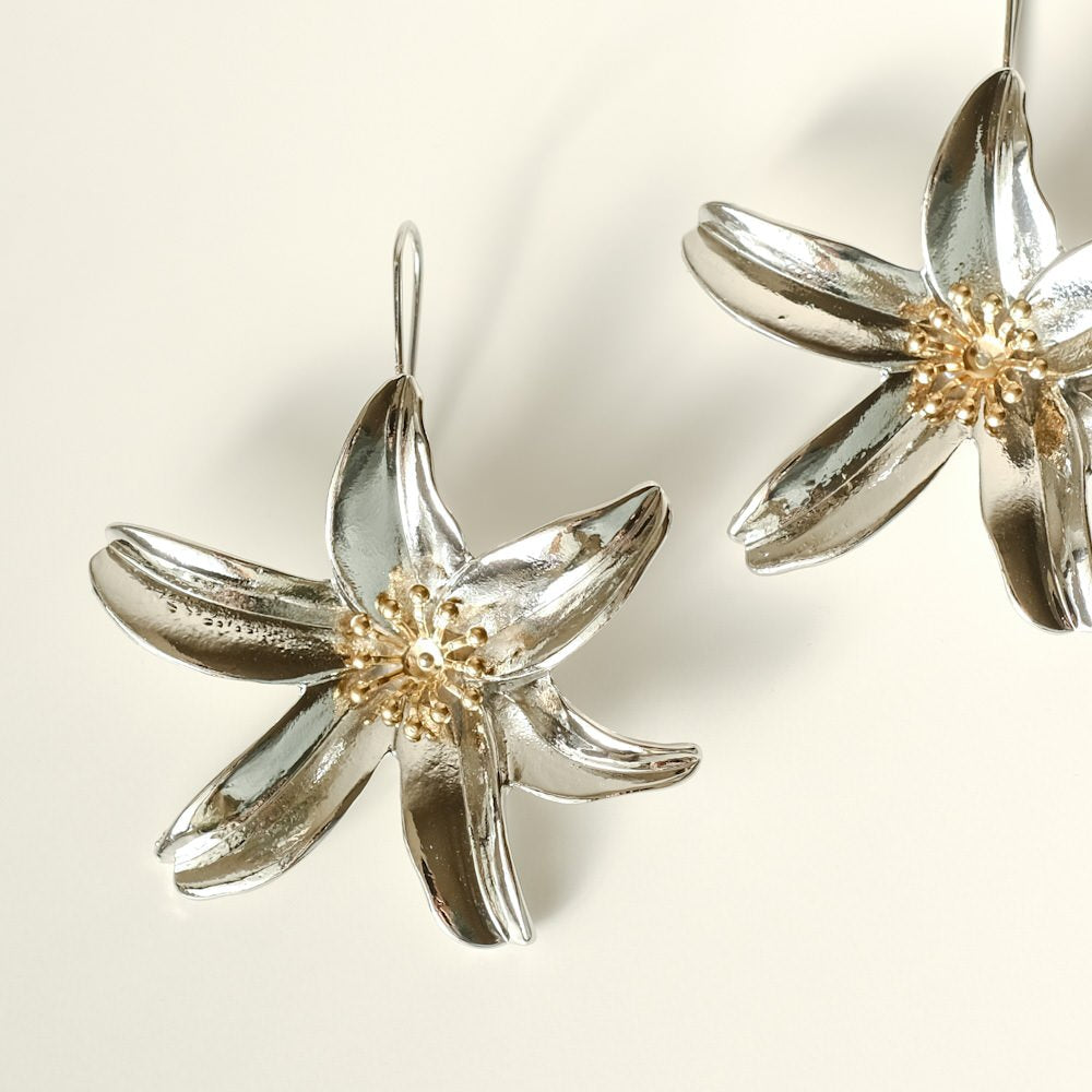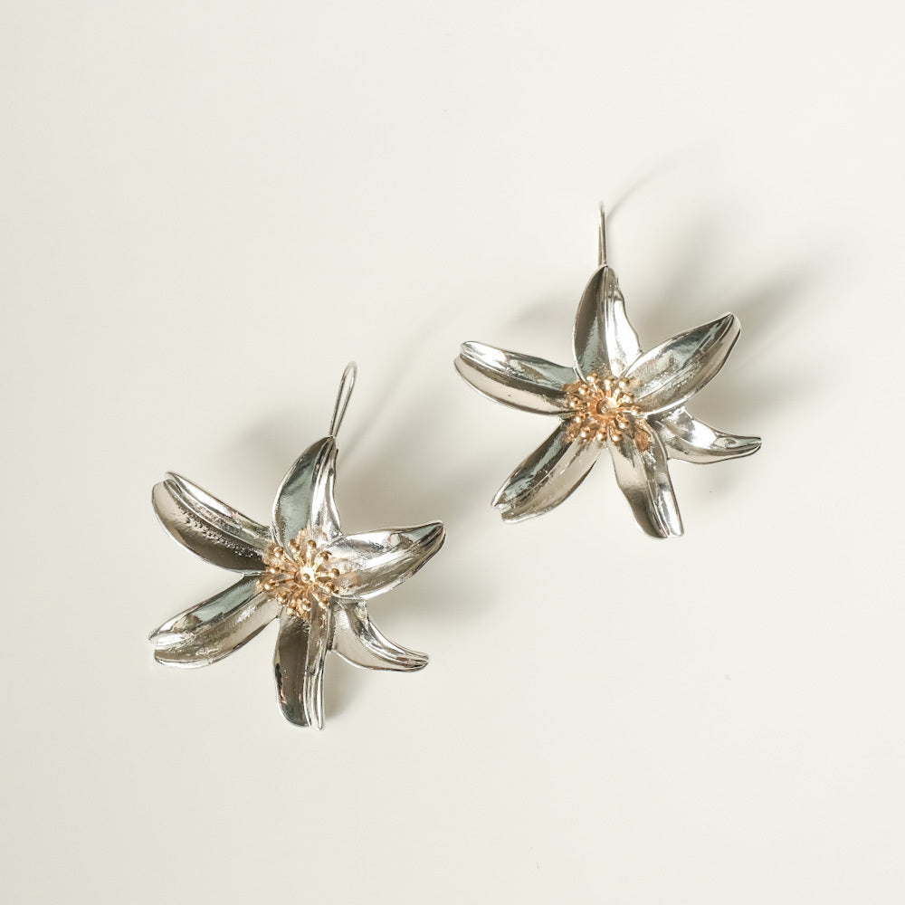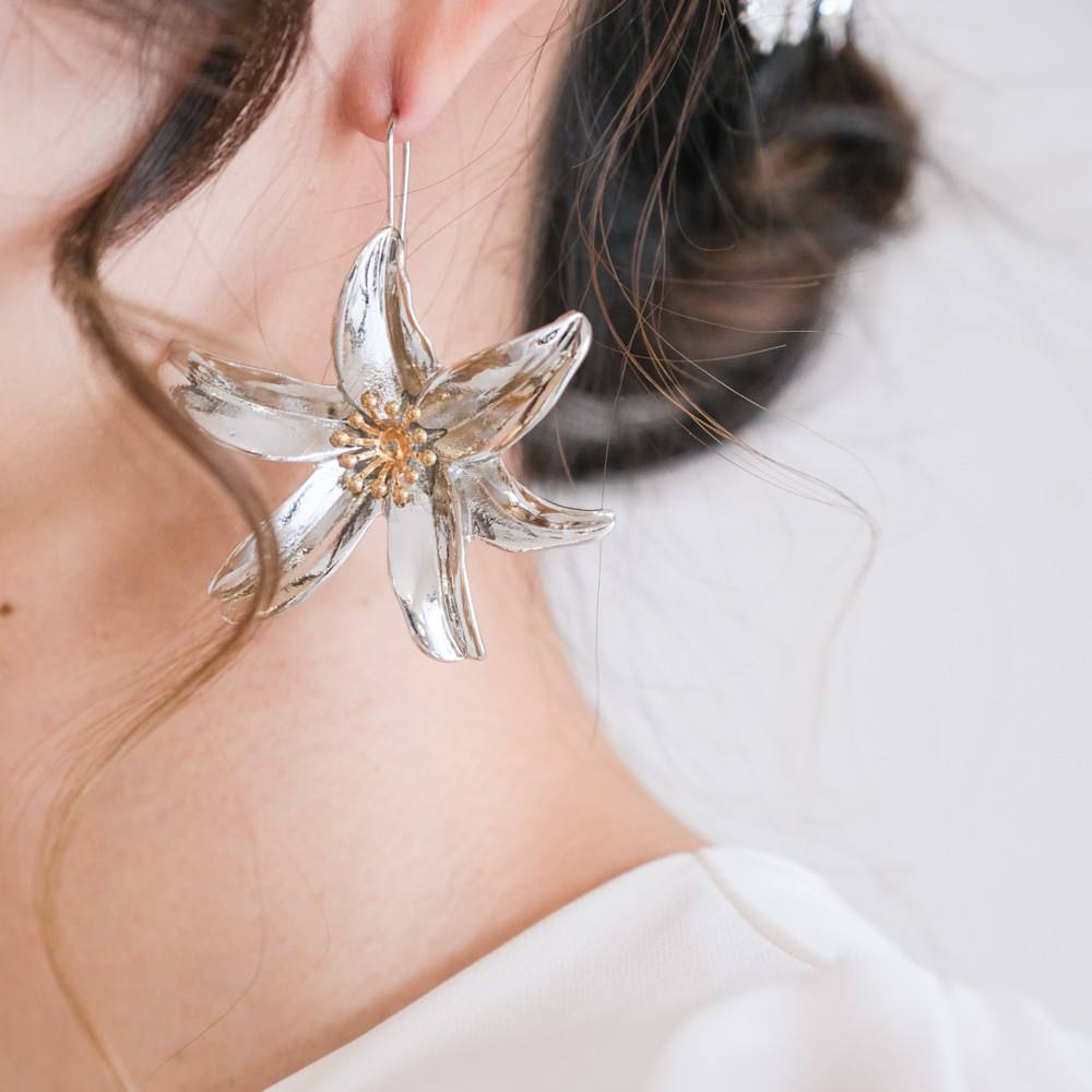 ・シルバーとゴールドフラワーのアンティーク風ピアス