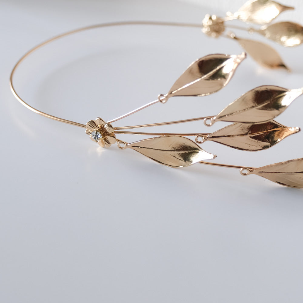 【イヤリング付き】 ブライダルヘッドドレス ホーンクラウン 小枝ヘッドドレス リーフ ゴールド q6 【結婚式 ヘアアクセサリー】