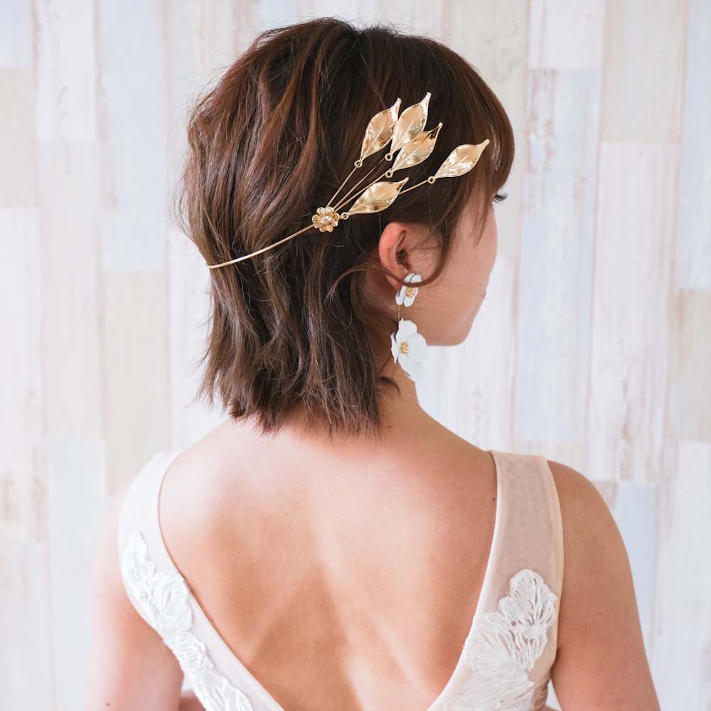 ・ゴールドリーフのイヤリング付き(ピアス変更可能)