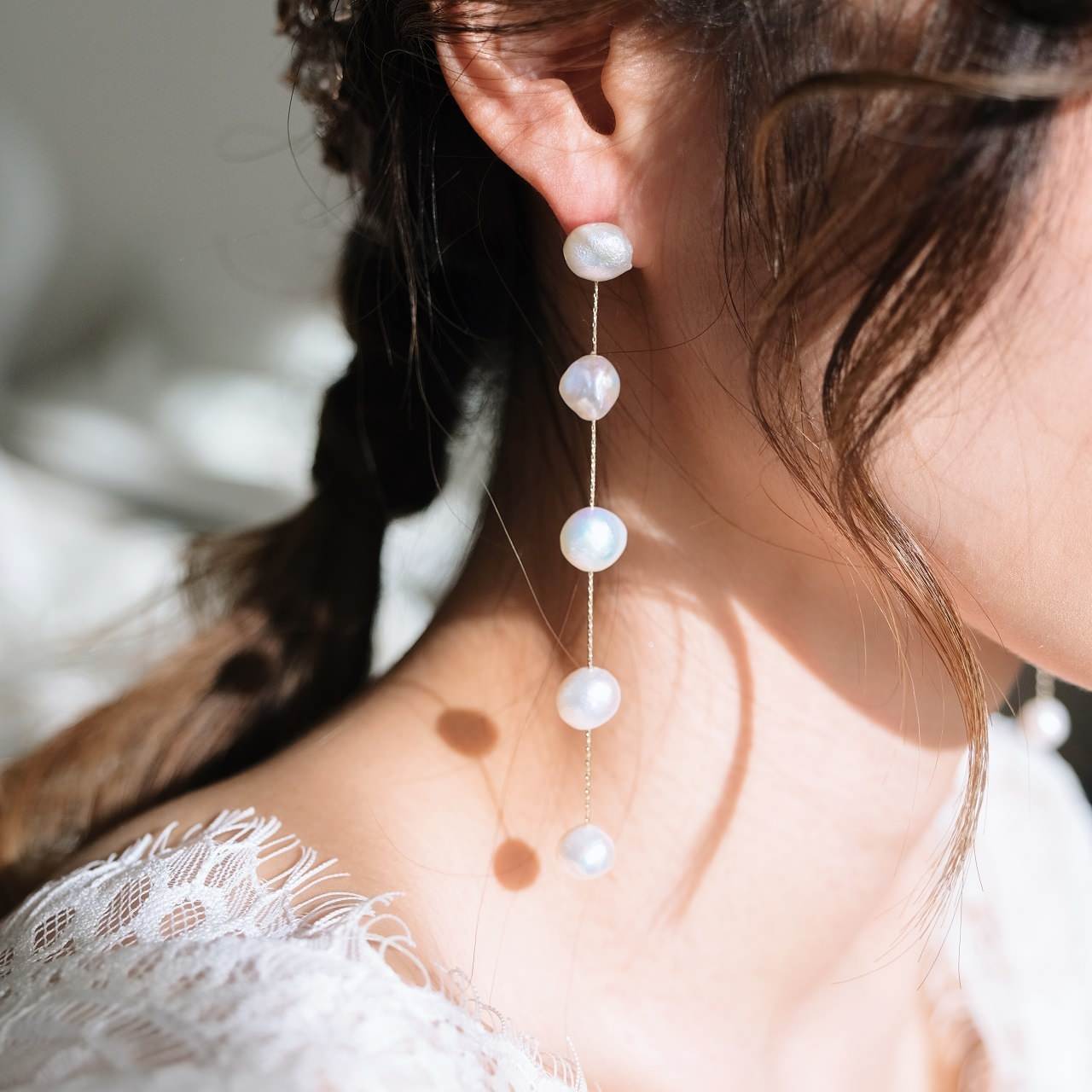 【ピアス】ブライダルピアス パール ラインピアス ゴールド q2 【結婚式 ピアス イヤリング】