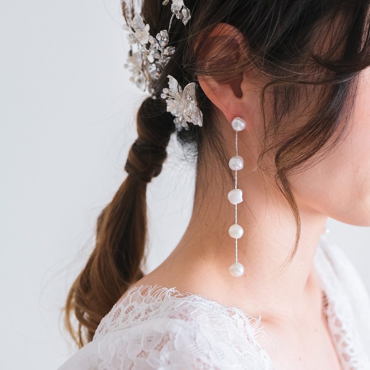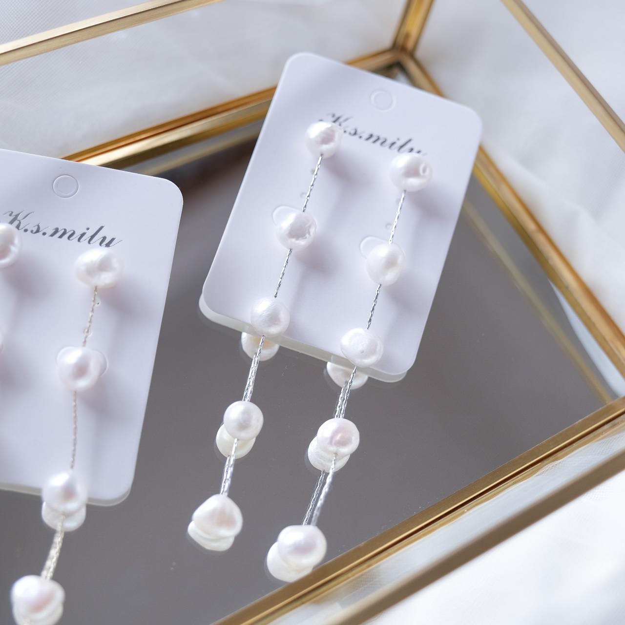 ・5つのパールが連した華奢なブライダルピアス