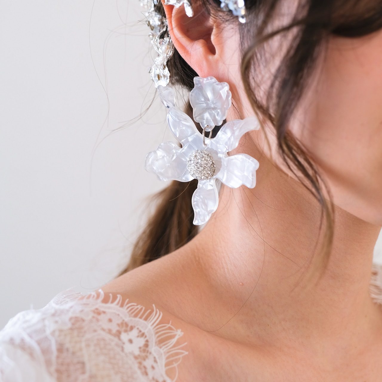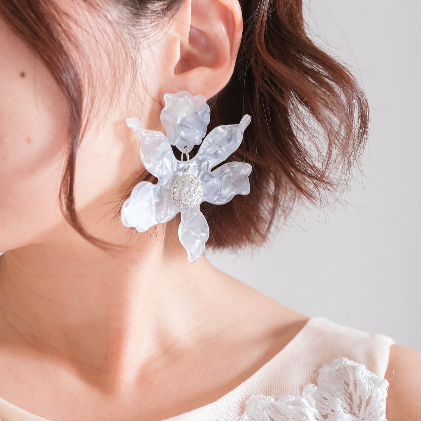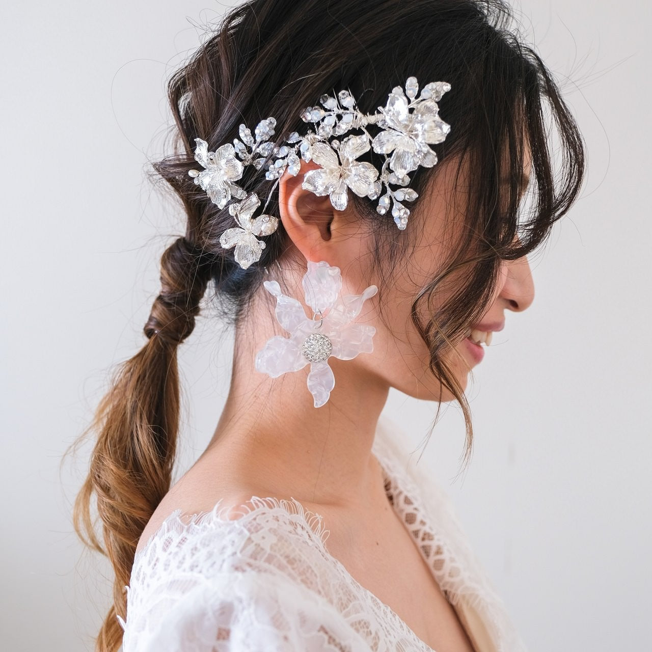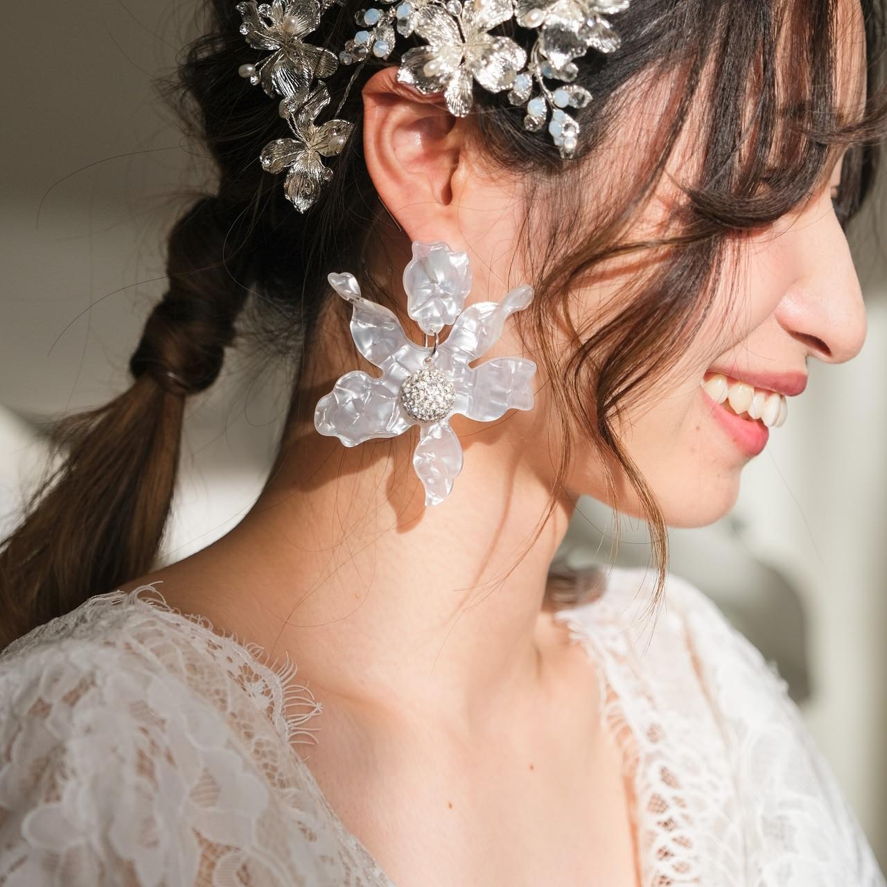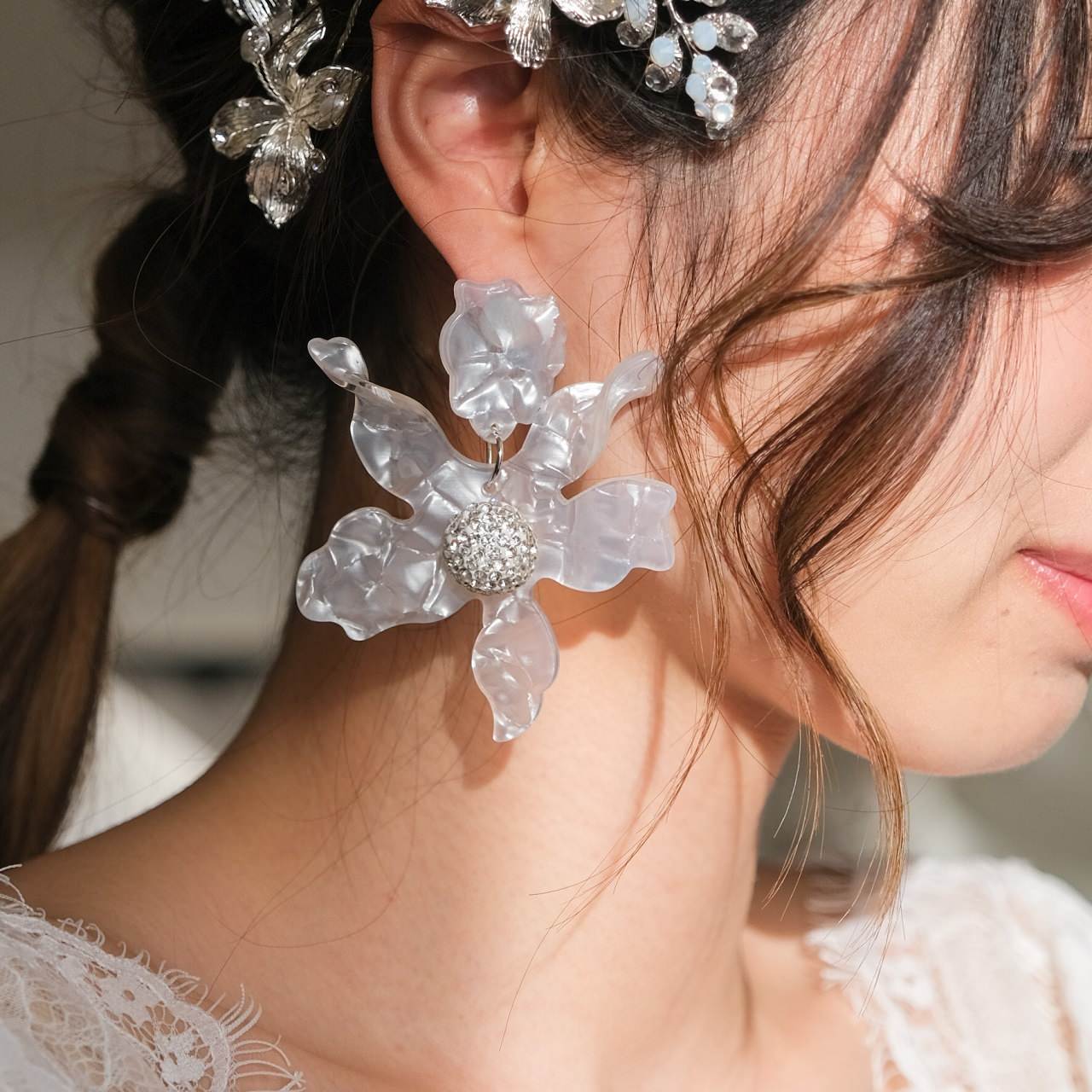 【ピアス】ブライダルピアス ウェディング ホワイトフラワー ビジュー クリアピアス q3 【結婚式 ピアス イヤリング】