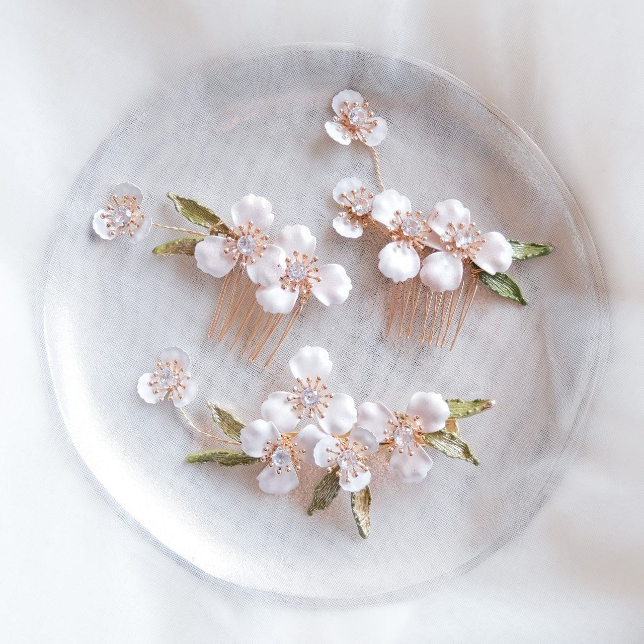・ほんのりピンクの花と緑のリーフが特徴のヘッドドレス