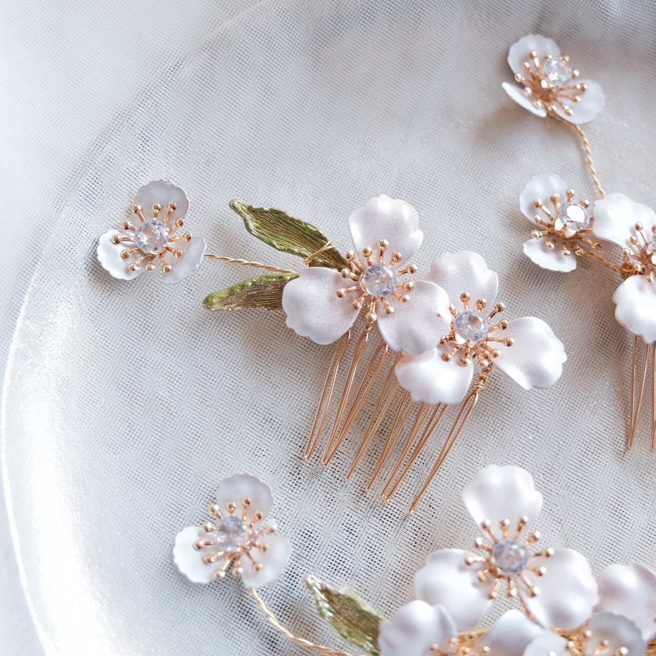 (3点セット) ブライダルヘッドドレス フラワー ピン パール ゴールド p12 【結婚式 ヘアアクセサリー】