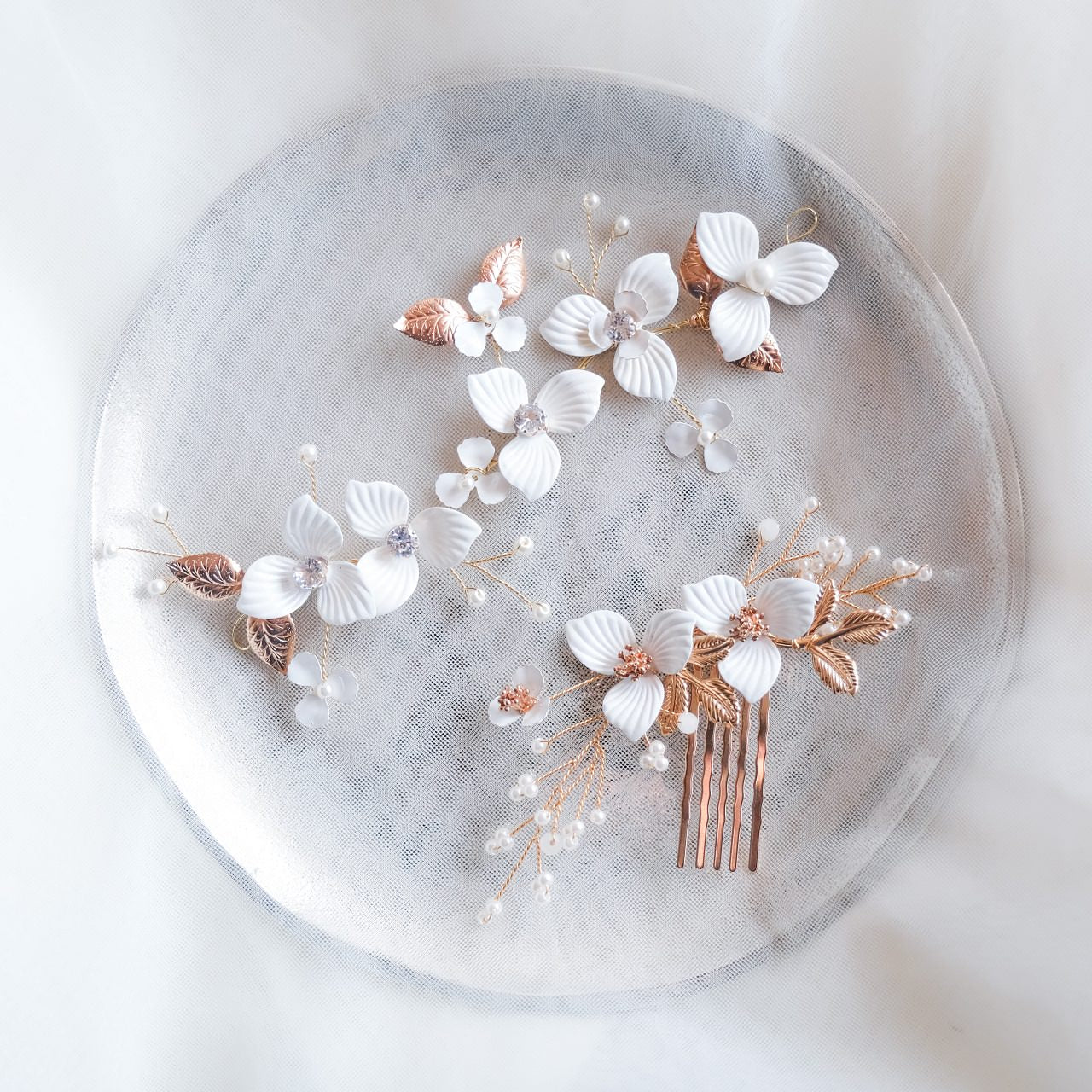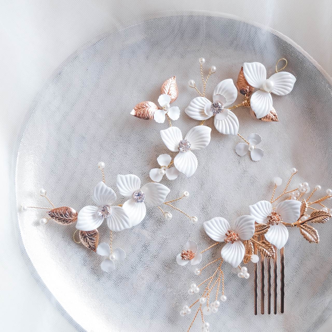 (2点セット) ブライダルヘッドドレス フラワー ピン パール ゴールド p8 【結婚式 ヘアアクセサリー】