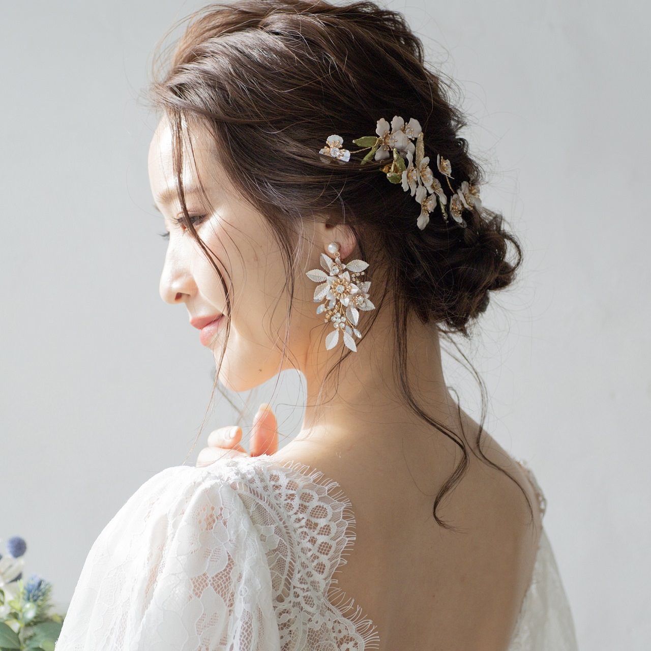 【イヤリング】ブライダルイヤリング 小枝イヤリング ビジュー ゴールド p4 【結婚式 ピアス イヤリング】