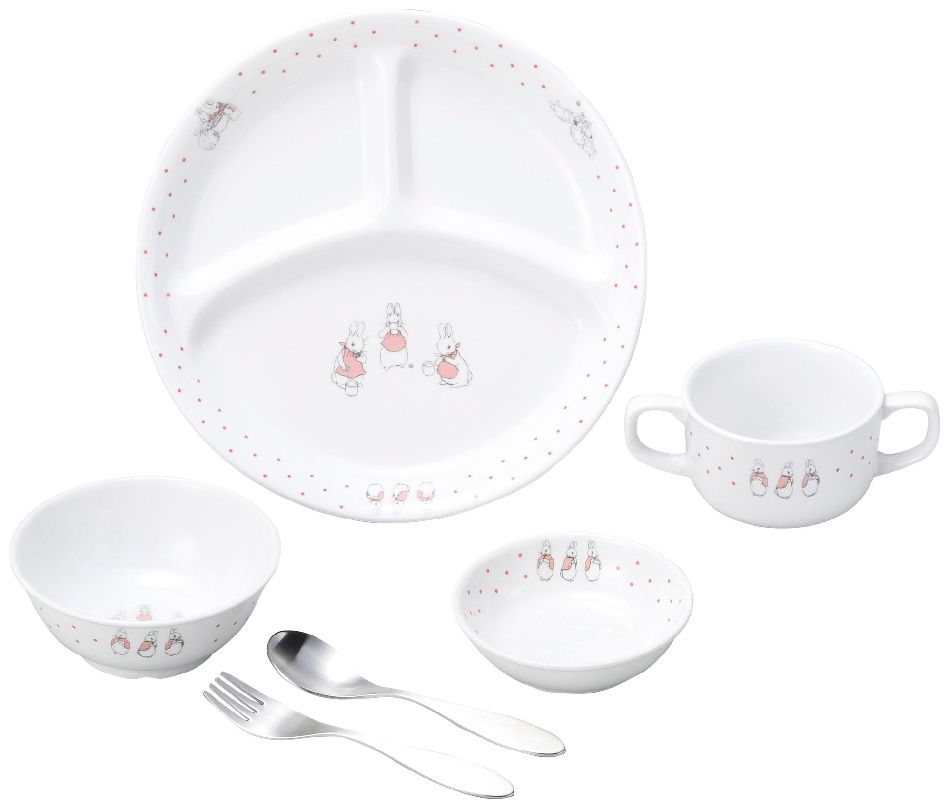強化磁器 こども用 食器&スプーンフォークセット ピーターラビット™ ドットガールズ【熨斗可】 【結婚式 ギフト 内祝い 結婚祝い 出産祝い】