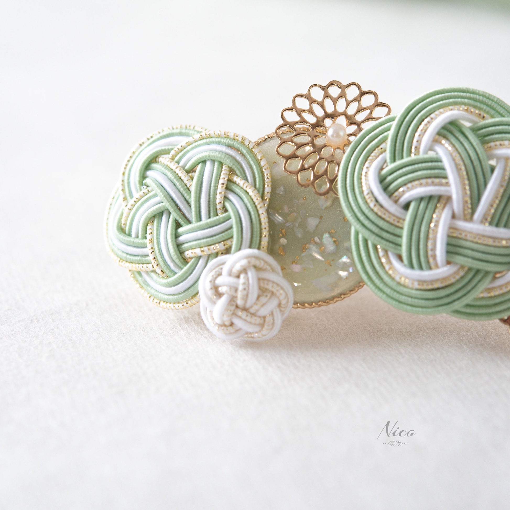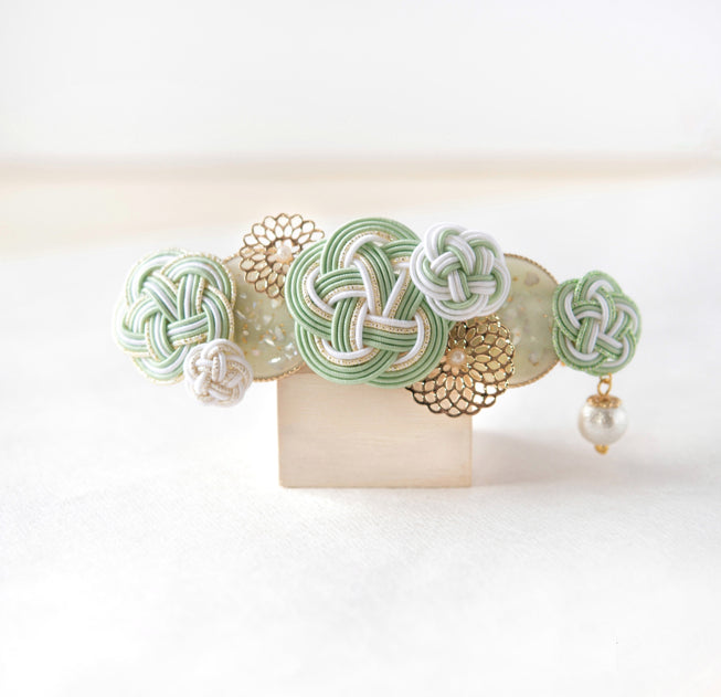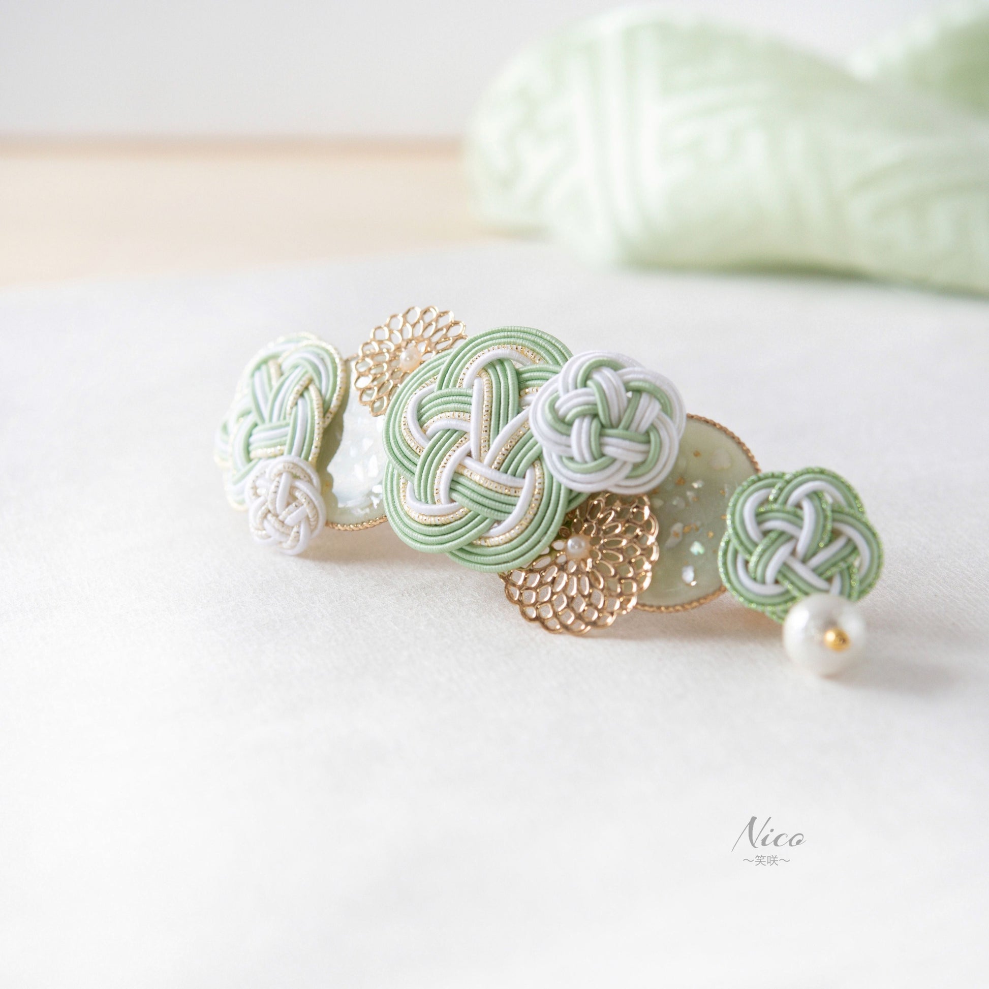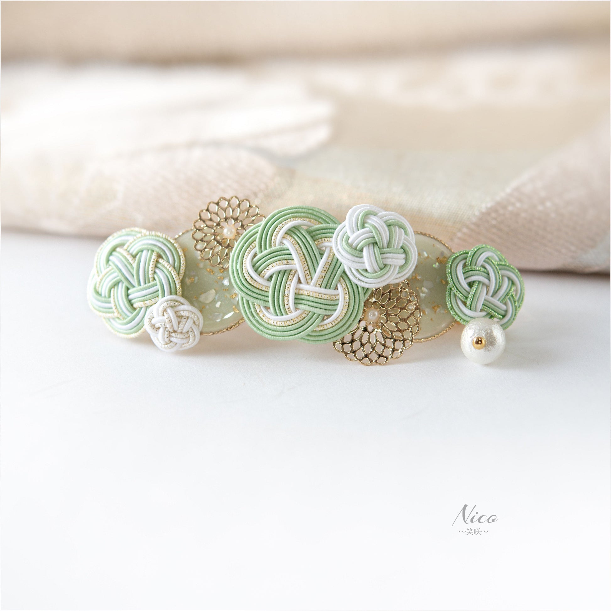水引バレッタ お花いっぱい 青磁色 【結婚式 和装 アクセサリー】