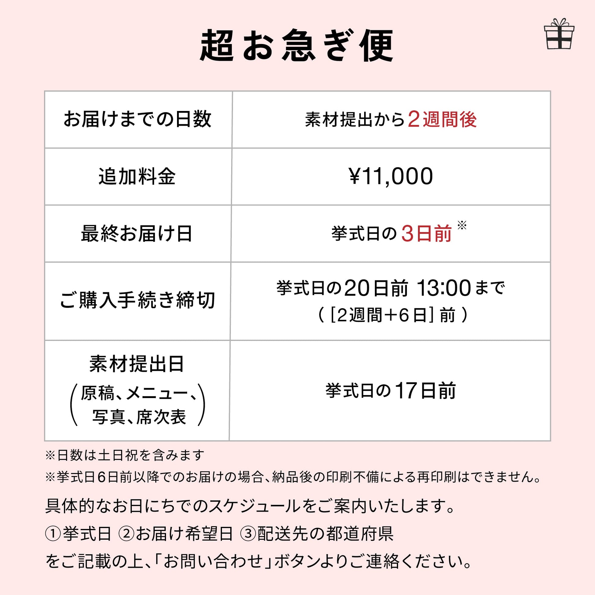 ▶︎【席次表なし】のタイプをお求めのお客様は、関連アイテムをご覧ください。