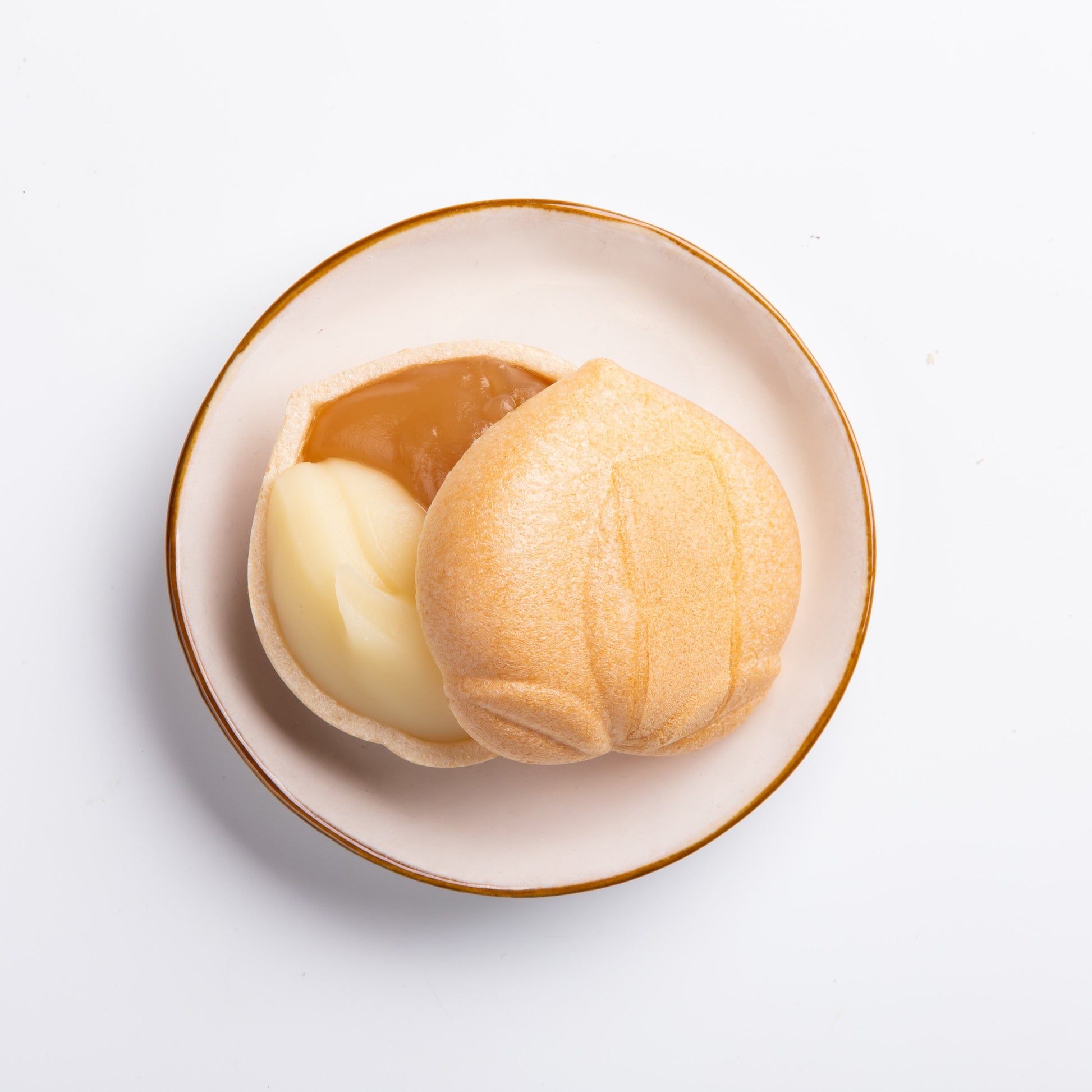 自社農園で土づくりからこだわりぬいて栽培された桃は風味と果肉食感がしっかりとたち、独自の配合で合わせたマスカルポーネチーズとクリームチーズ餡のまろやかなコクが、豊かな味わいを生みだします。