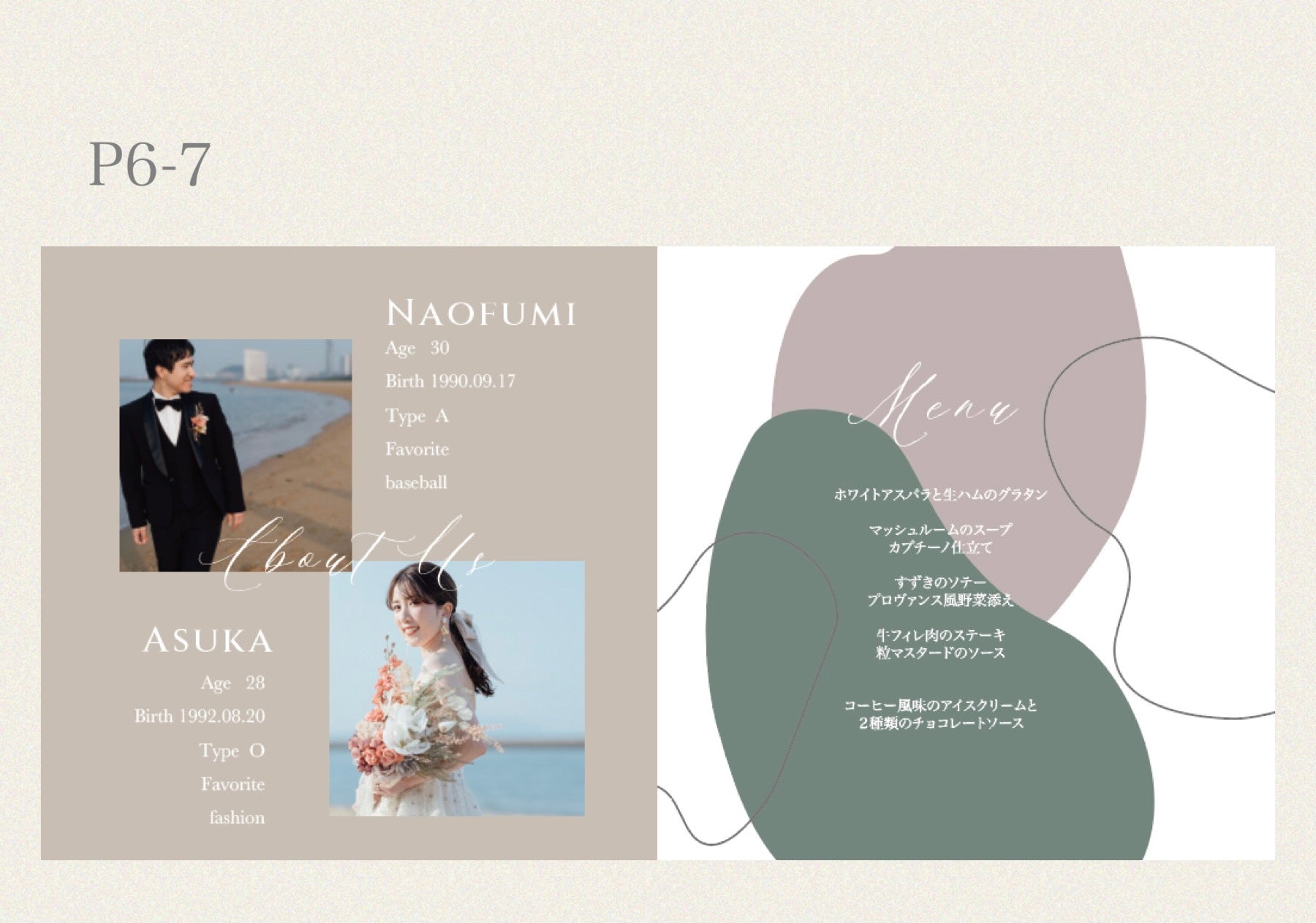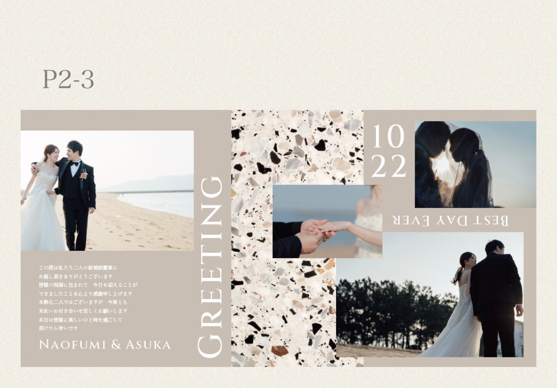 掲載画像2枚目よりデザイン例をページ順に掲載しております