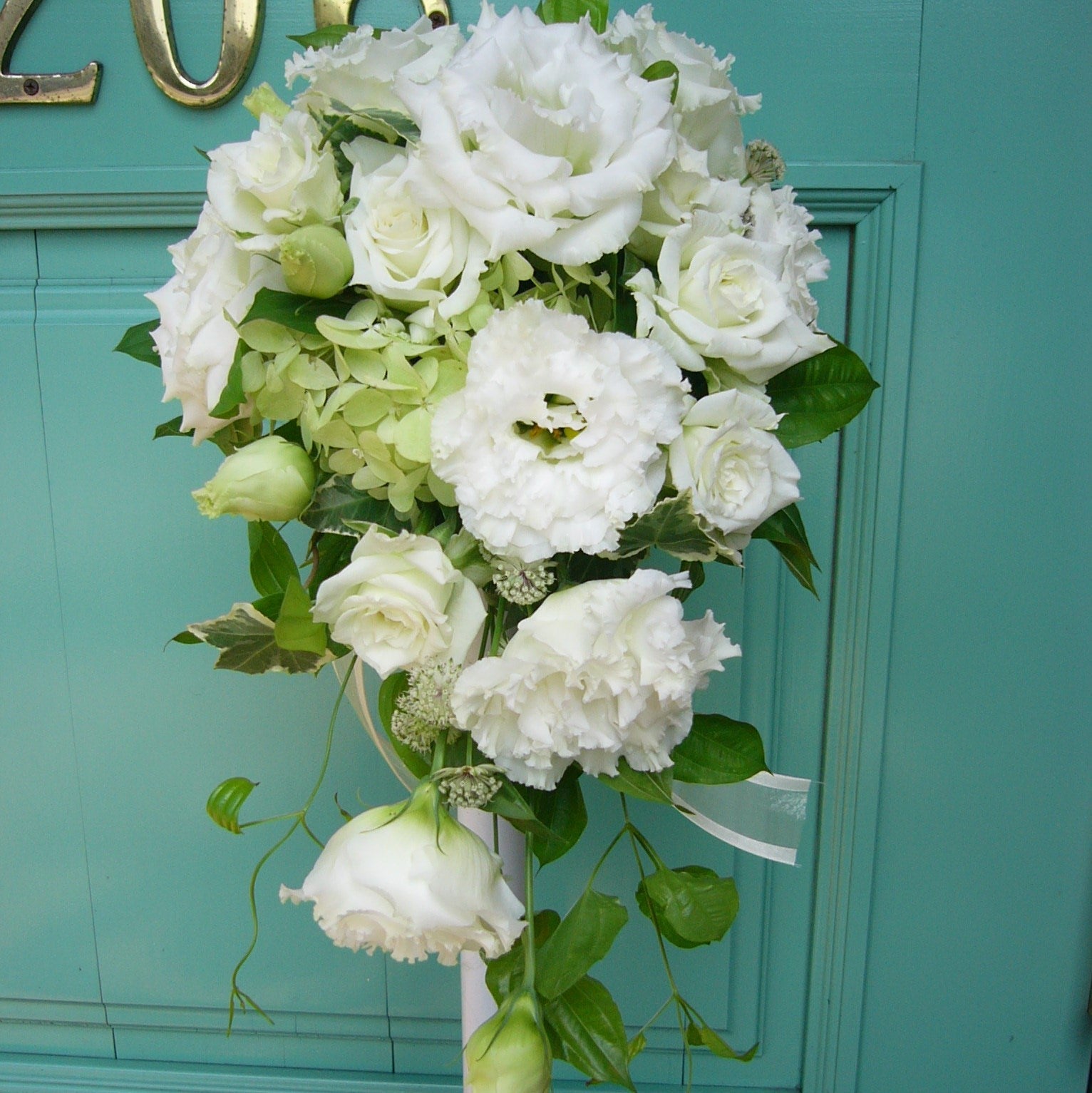 【生花】キャスケードブーケ(ブートニア付き) 【結婚式 フラワー 生花 ブーケ ブートニア オーダーメイド】