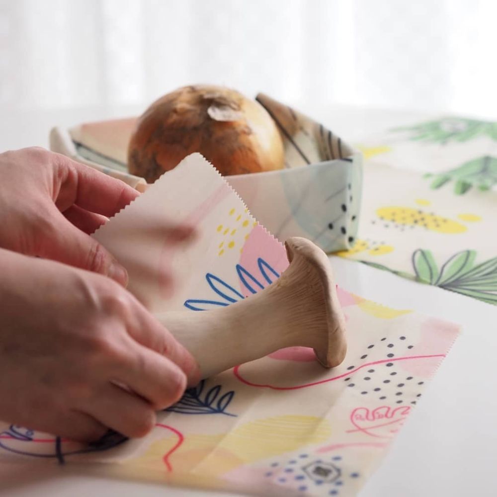 ヴィーガンラップは手の暖かさで食器や器に合わせ、お好きな形にフィットさせることができます。洗浄の際は、水または少量の食器用洗剤で洗い流し自然乾燥させ、直射日光を避け保管してください。