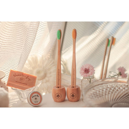 天然素材で作られているため、ご使用後はできるだけ水気を取り風通しのいい場所で保管してください。歯ブラシ部分はBPAフリーのナイロン製のブラシのため、ハンドル部分のみ土に還ります。ピンセットなどでブラシを抜いてからの廃棄をおすすめします。