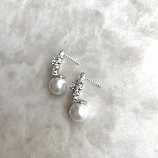 ワンピースなどに合わせていただいても可愛く、ブライダルの中でもキチンとしたシーンにもお使いいただける清楚な雰囲気のジルコニアピアスです!