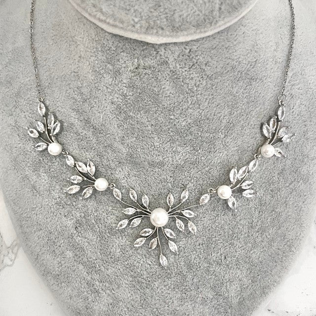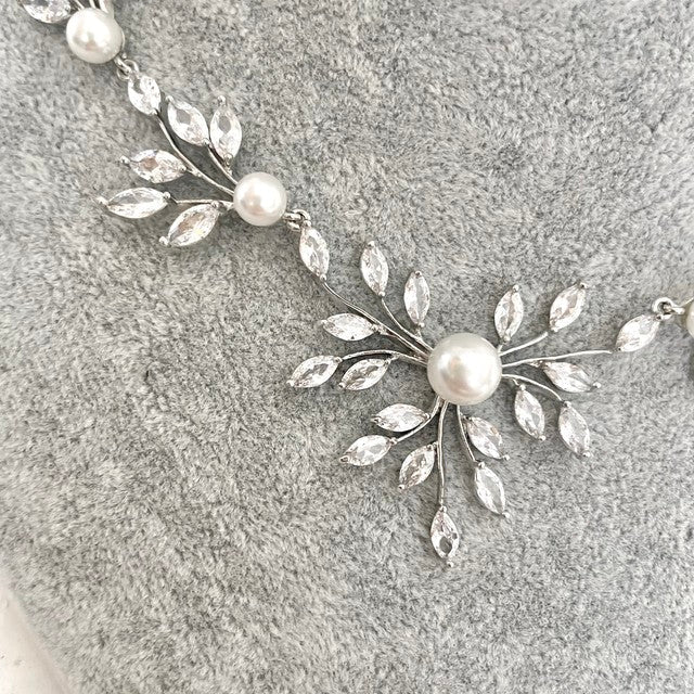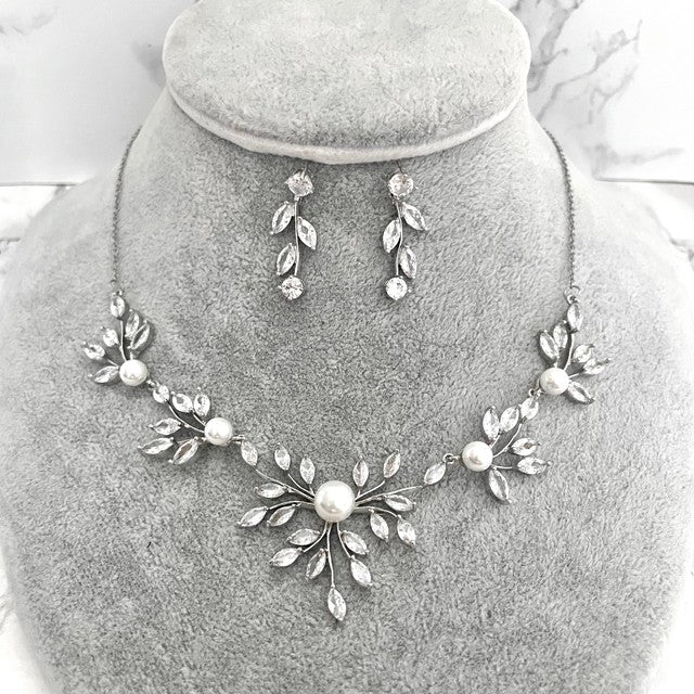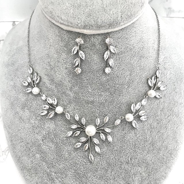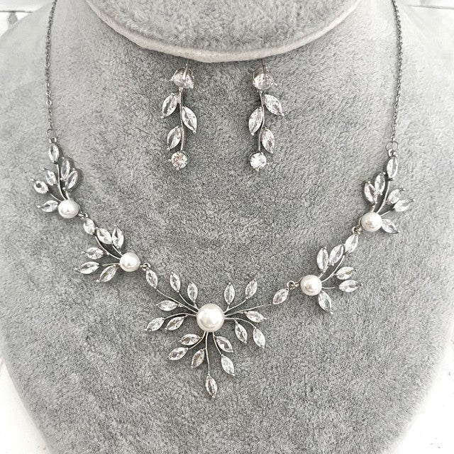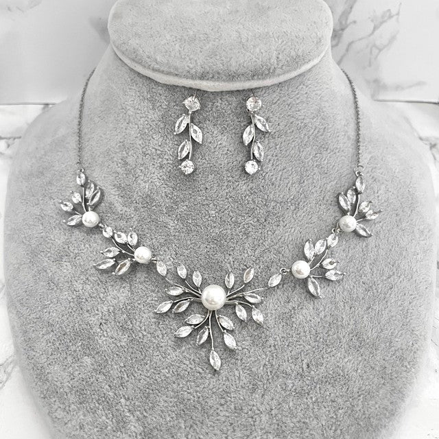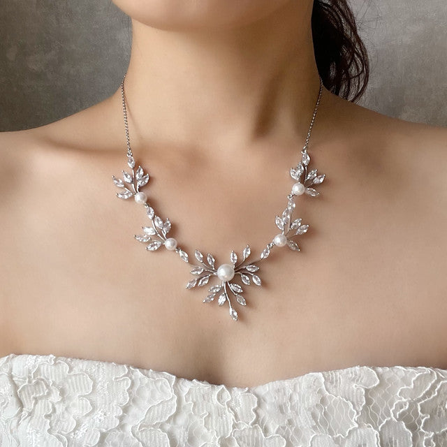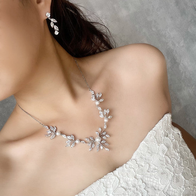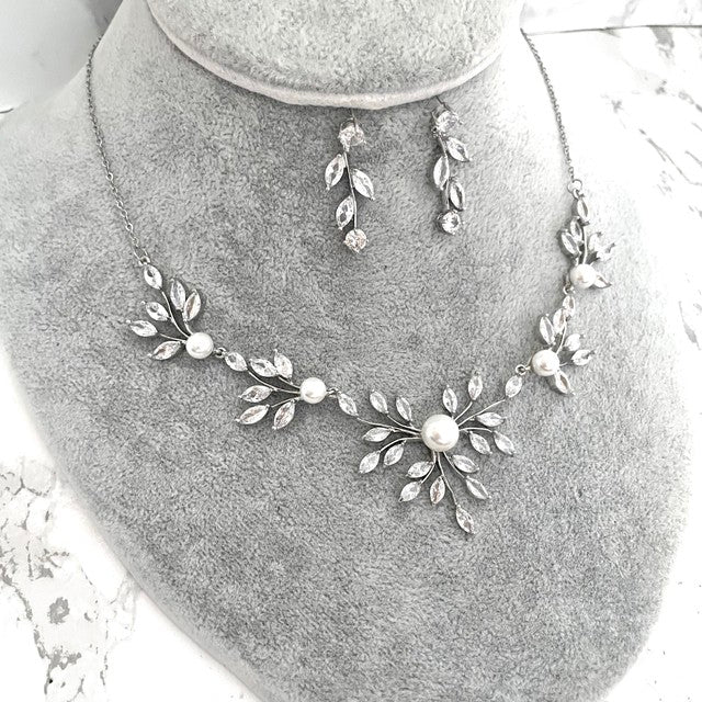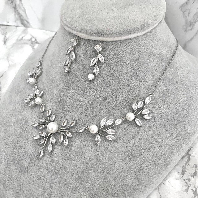 Jardin ジルコニアブライダルネックレス&ピアスセット 【結婚式 アクセサリーセット】