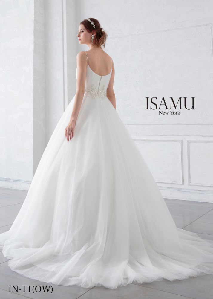 流行のストーローストラップの繊細さが、ビスチェタイプとは、また違った表情を見せてくれるウエディングドレスです。