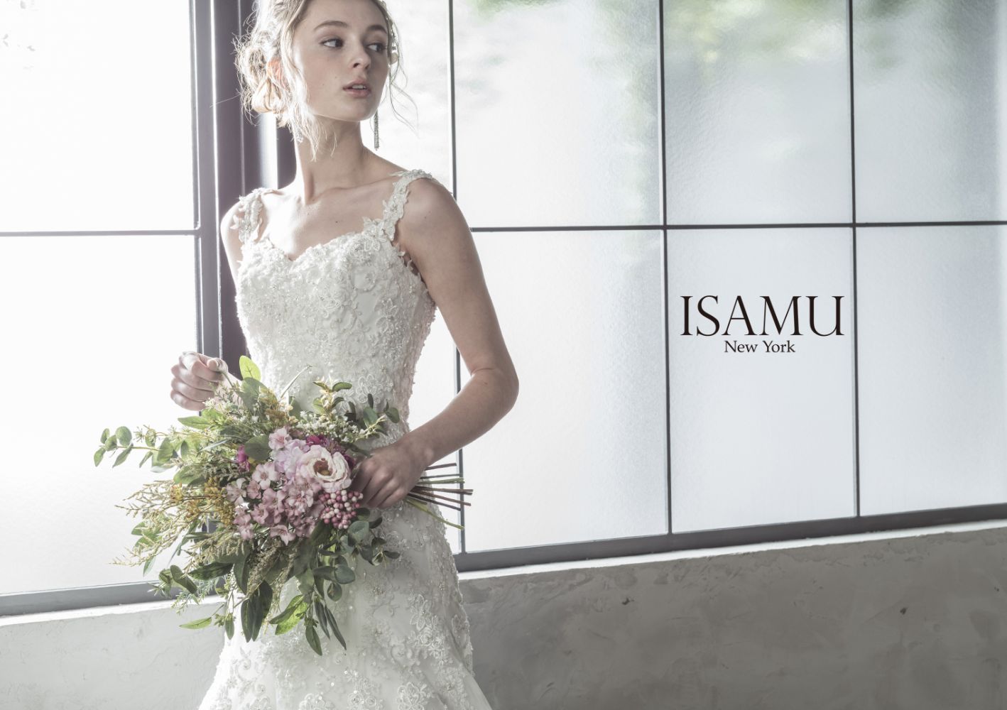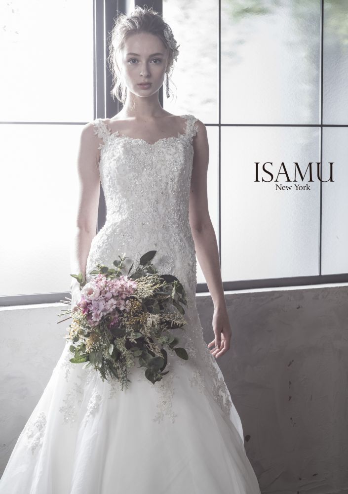 肩から背中にかけての女性の美しさをきわだたせるラインはイサムモリタならではの技が光るドレスです。