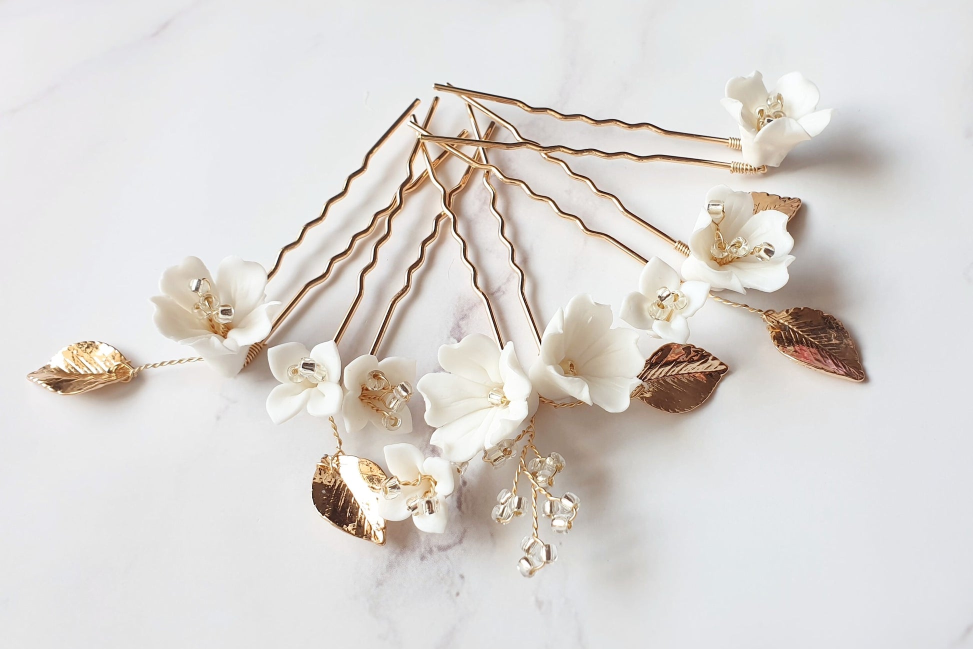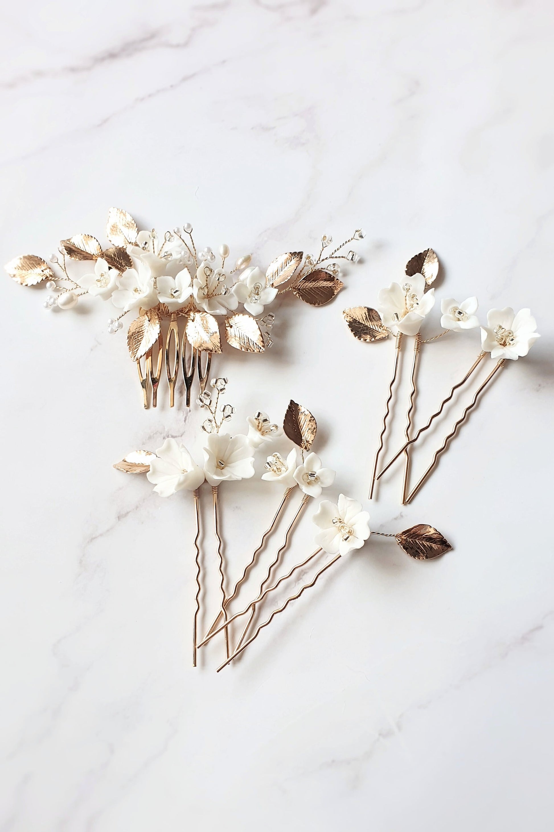 ヘアコームとヘアピンの合計6点セットとなりますので、お好きな位置にランダムに着用いただけます。