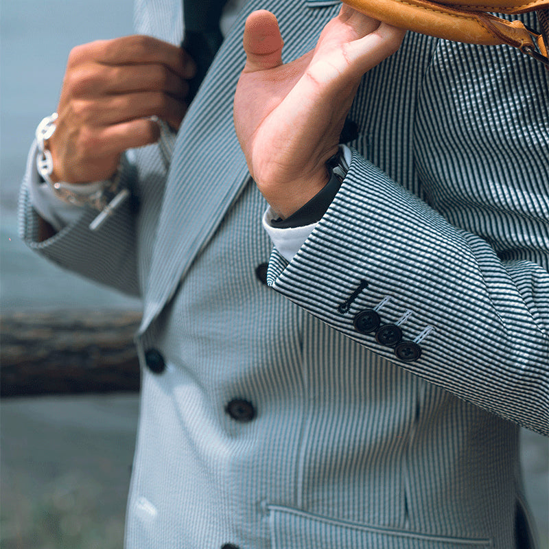 一般的なシアサッカー生地のセットアップは、使用している生地や裏地を軽量化しているので、高級感がないものが多いです。