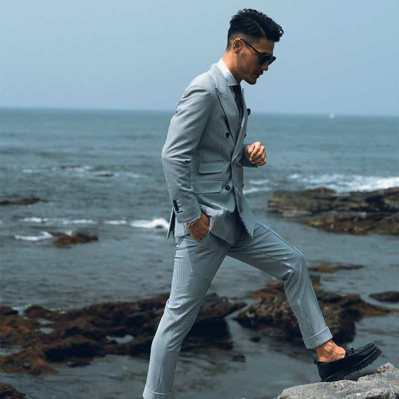 Seersucker Double/ブルー 【結婚式 タキシード】