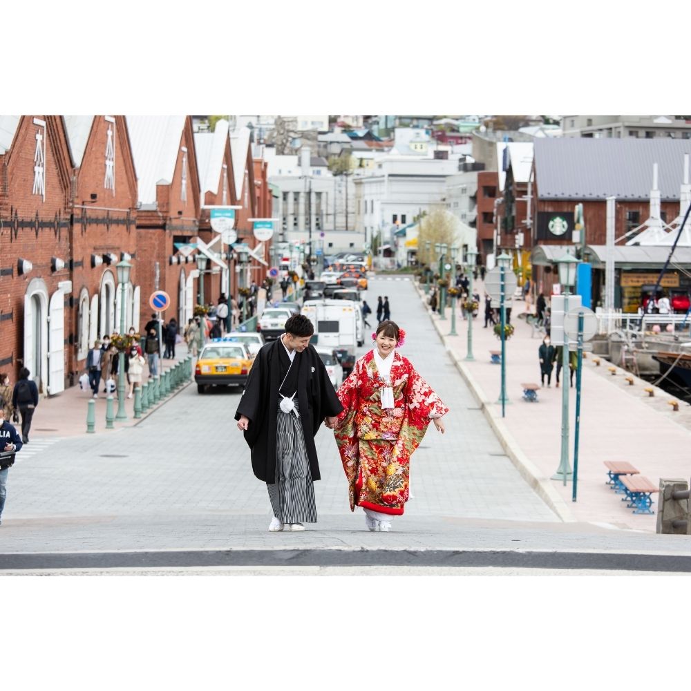 そんな函館では、八幡坂や金森赤レンガ倉庫、元町公園などカメラマンおすすめのスポットでロケーション撮影します。