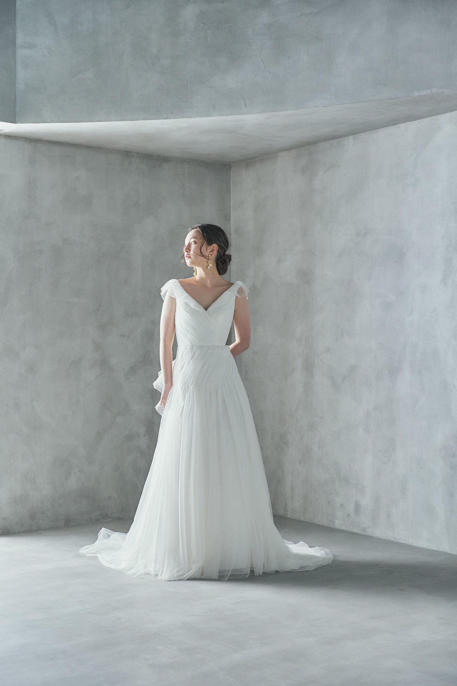透け感がある柔らかな生地を使用したセミAラインのドレス。