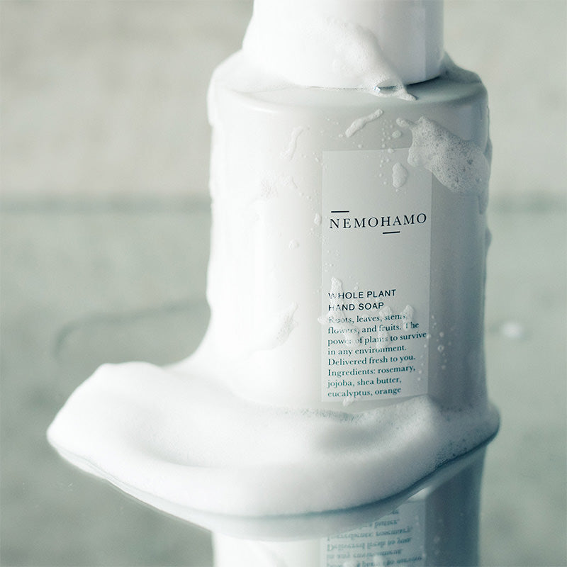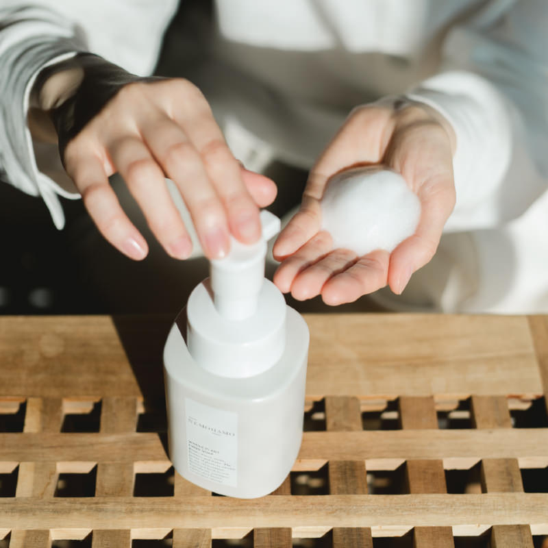 ハーブの中でも清潔力の高いユーカリを使用し、天然精油の優しい香りの泡が手肌を清潔に洗います。 潤い成分のホホバオイルとシアバター配合により、つっぱり感なく仕上げるハンドソープです。