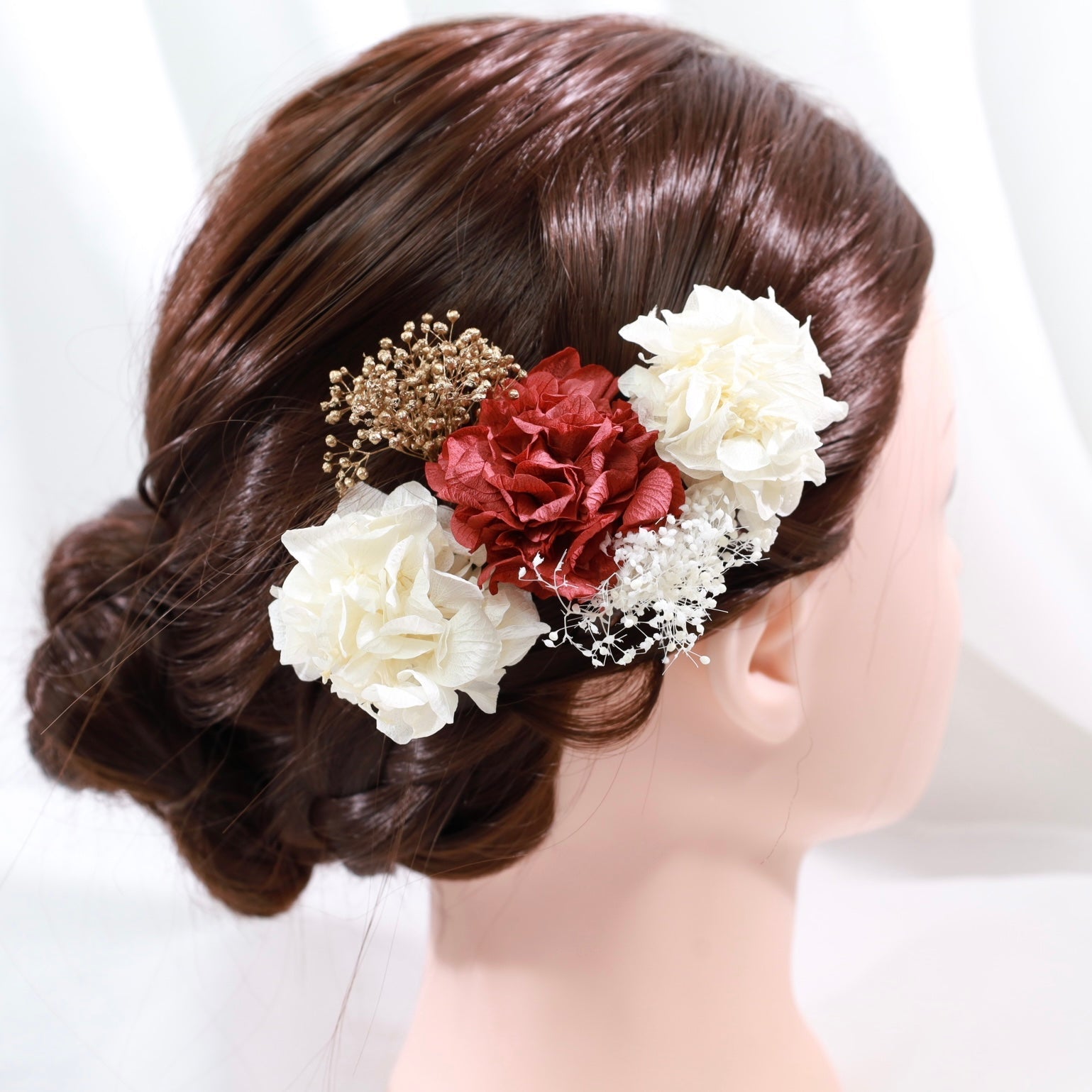 髪飾り ホワイトレッド【ヘアアクセサリー 花 ドライフラワー プリザーブド】 【結婚式 ヘアアクセサリー】
