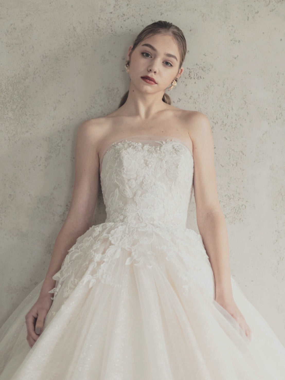 幾重にも重ねられたチュールに浮かび上がる繊細なレース、