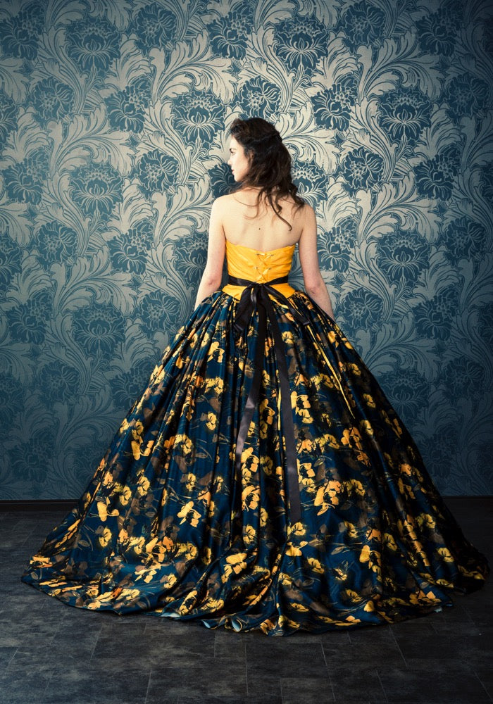 アンブロシアの花がプリントされたインパクト感のあるカラードレス