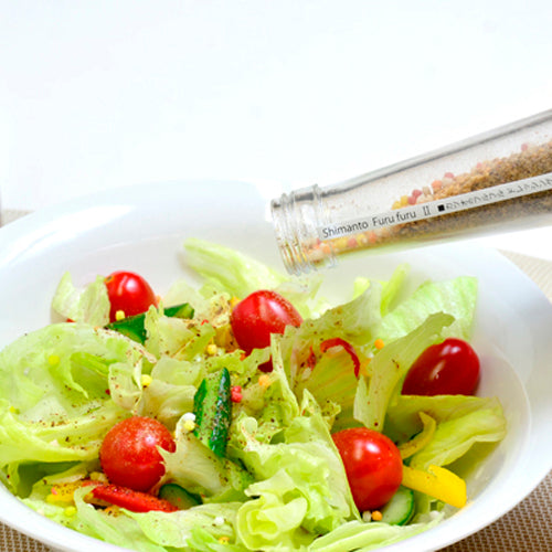サラダのマンネリ化を解消!無添加の材料のみで作る「しまんとフルフルドレッシング」。日本でも世界でも類を見ない、鰹節や貴重な宗田鰹節の粉をベースに、昆布・煎り胡麻・ぶぶあられに青のりや梅しそが原材料の、すべて天然素材の、粉のドレッシング。それだけで、サラダのドレッシングに!また、いつものドレッシングにこれをチョイ足しで、いつもと違った味に早変わり!