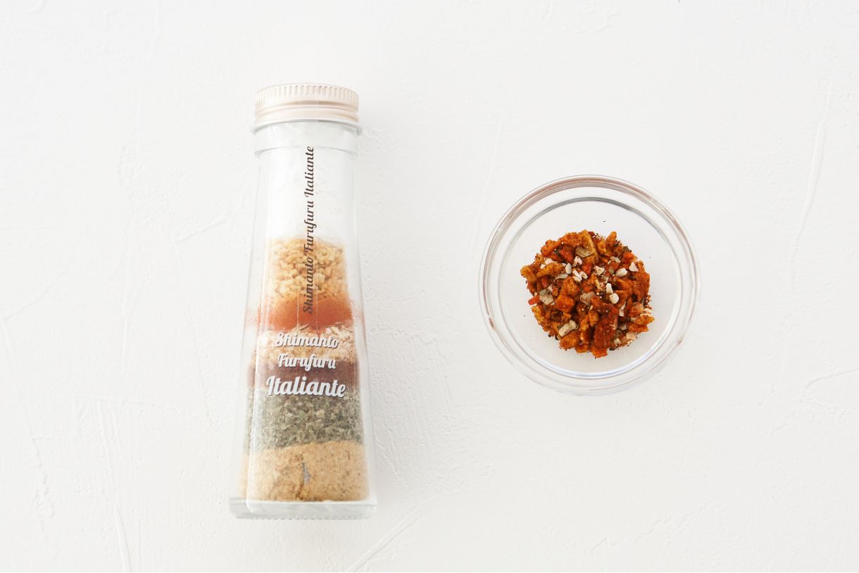 | 素材 | にんにく、乾燥玉ねぎ、チリペッパー、バジル、ブラックペッパー、かつお削りぶし、そうだかつお削りぶし、パプリカ、クミン、オレガノ、食塩、植物油脂 |