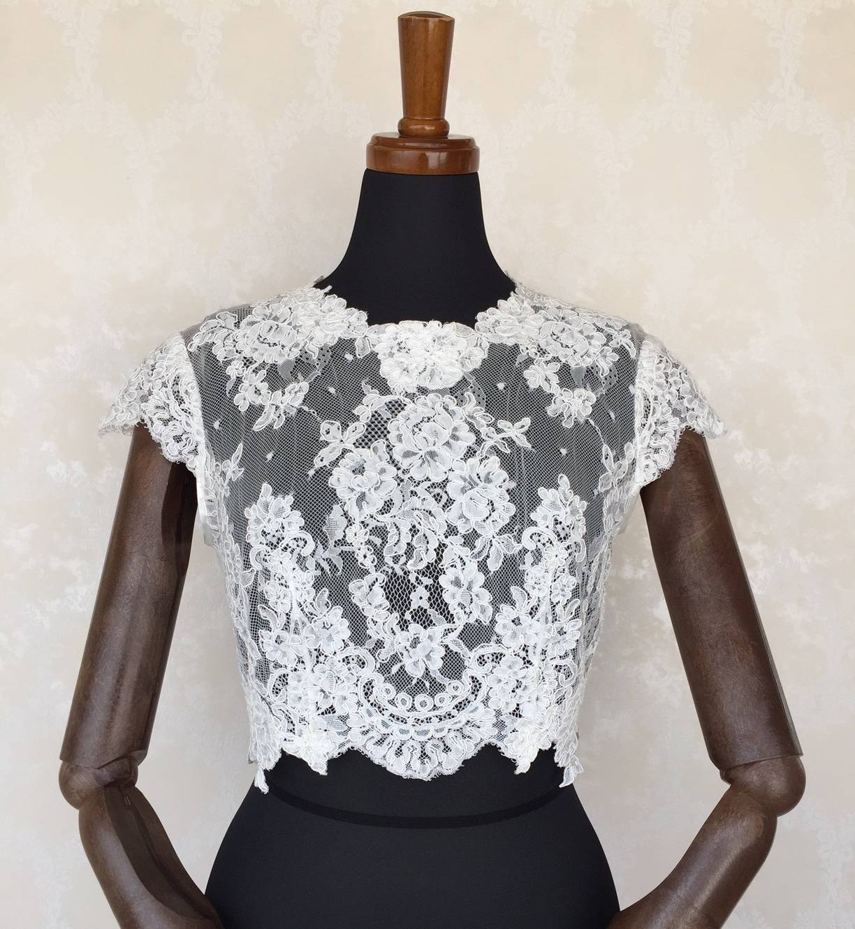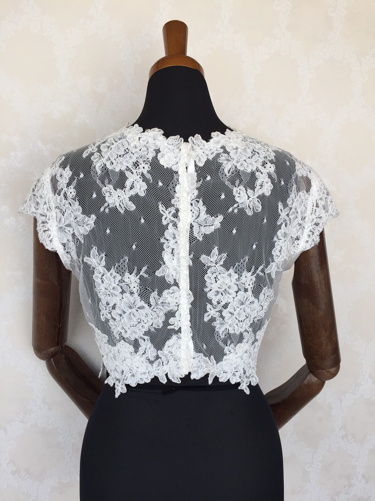 ウェディングドレスのアレンジ、お色直しに!半袖タイプのレースボレロ。ショート丈で、首元のレースで可愛らしい印象に。