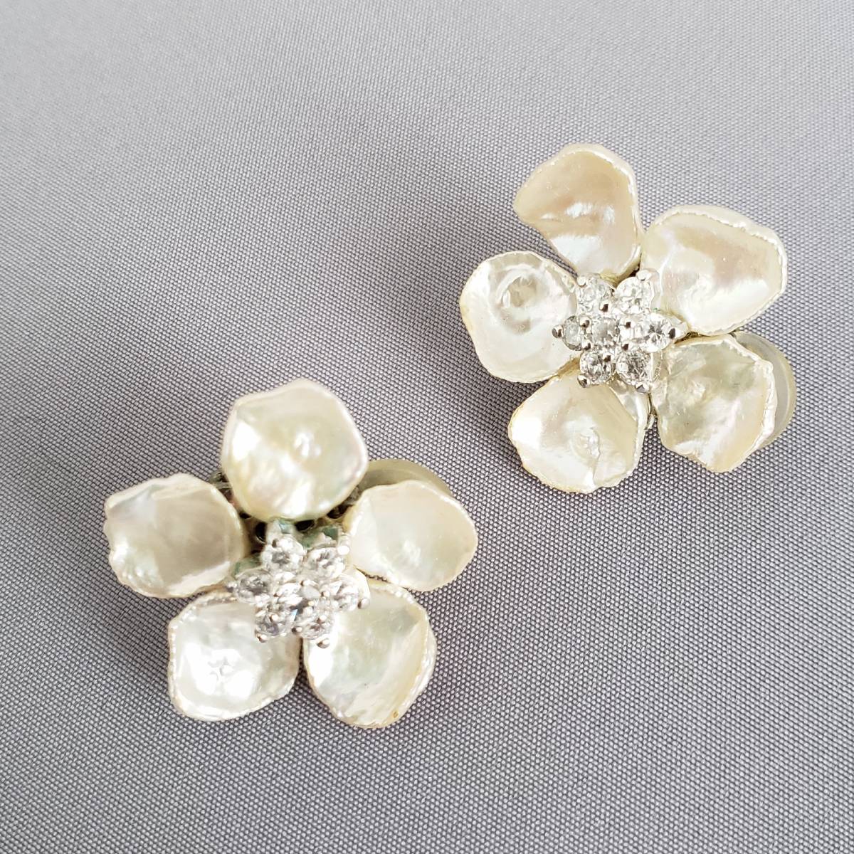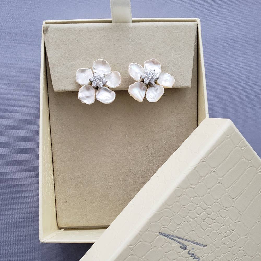 【3泊4日】Siman Tu サイマントゥ 白蝶貝フラワーイヤリング 【結婚式 ピアス イヤリング レンタル】