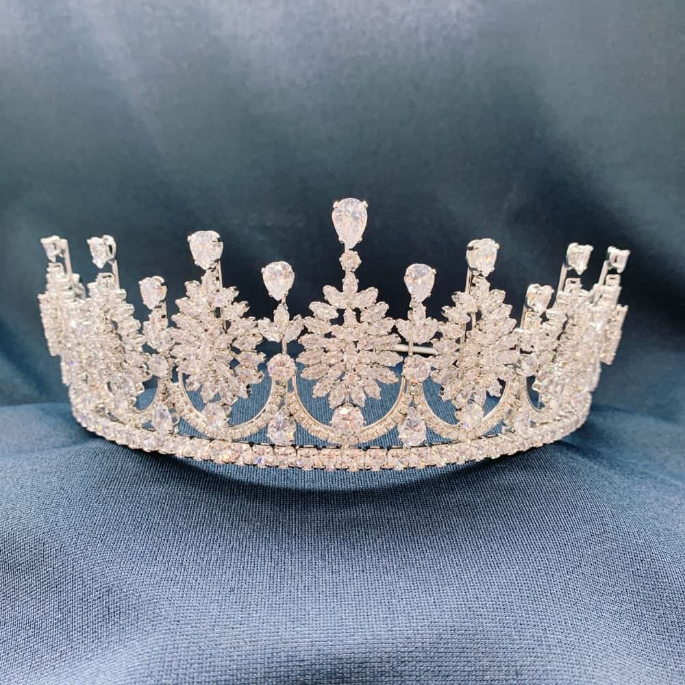 存在感のある大きさで、大小のキュービックジルコニアがふんだんに使われた立体感のあるティアラは注目の的になること間違いなし。