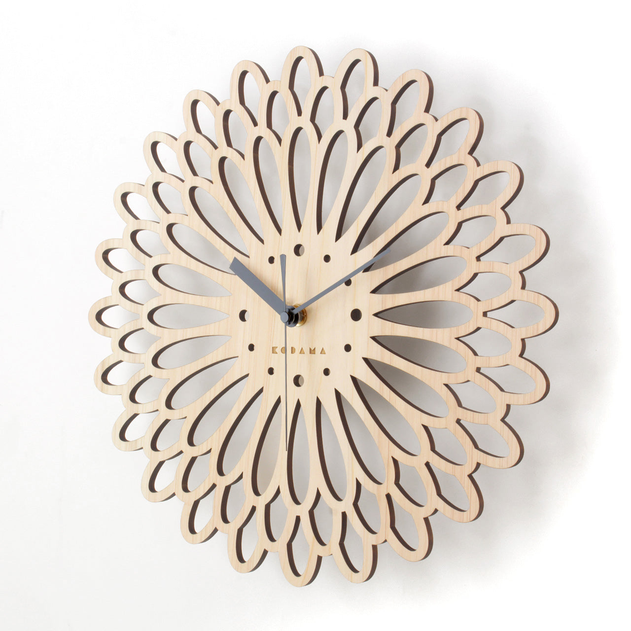 ヒノキに繊細な透し彫りを施した上品でシンプルな掛け時計です。