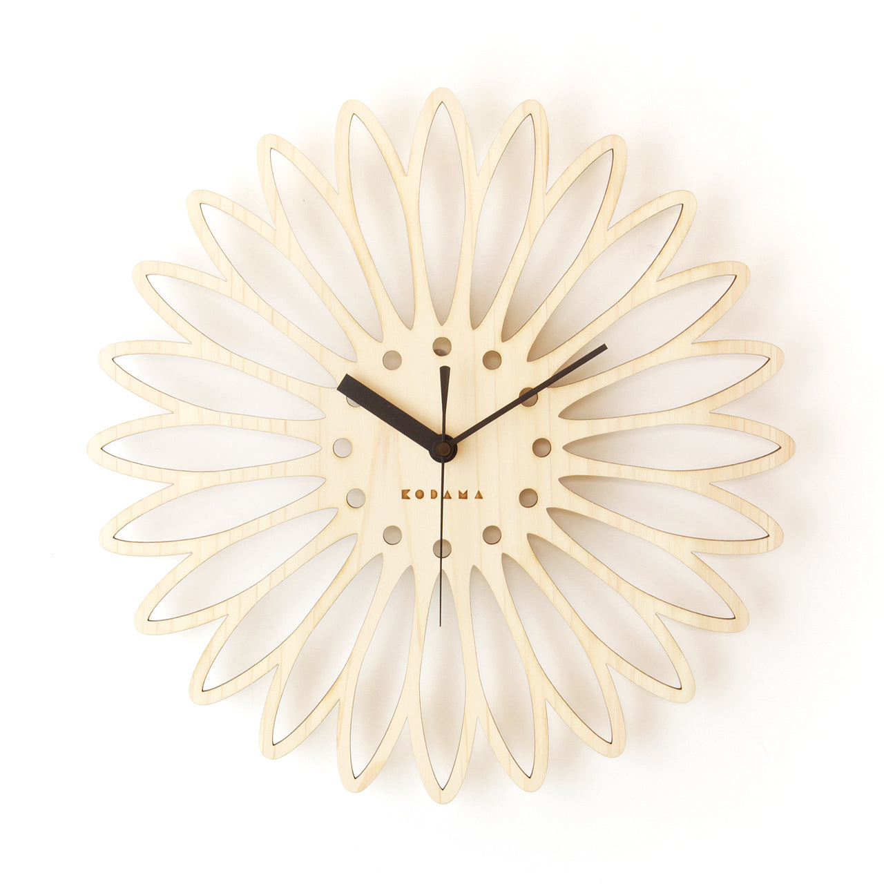 ヒノキに繊細な透し彫りを施した上品でシンプルな掛け時計です。