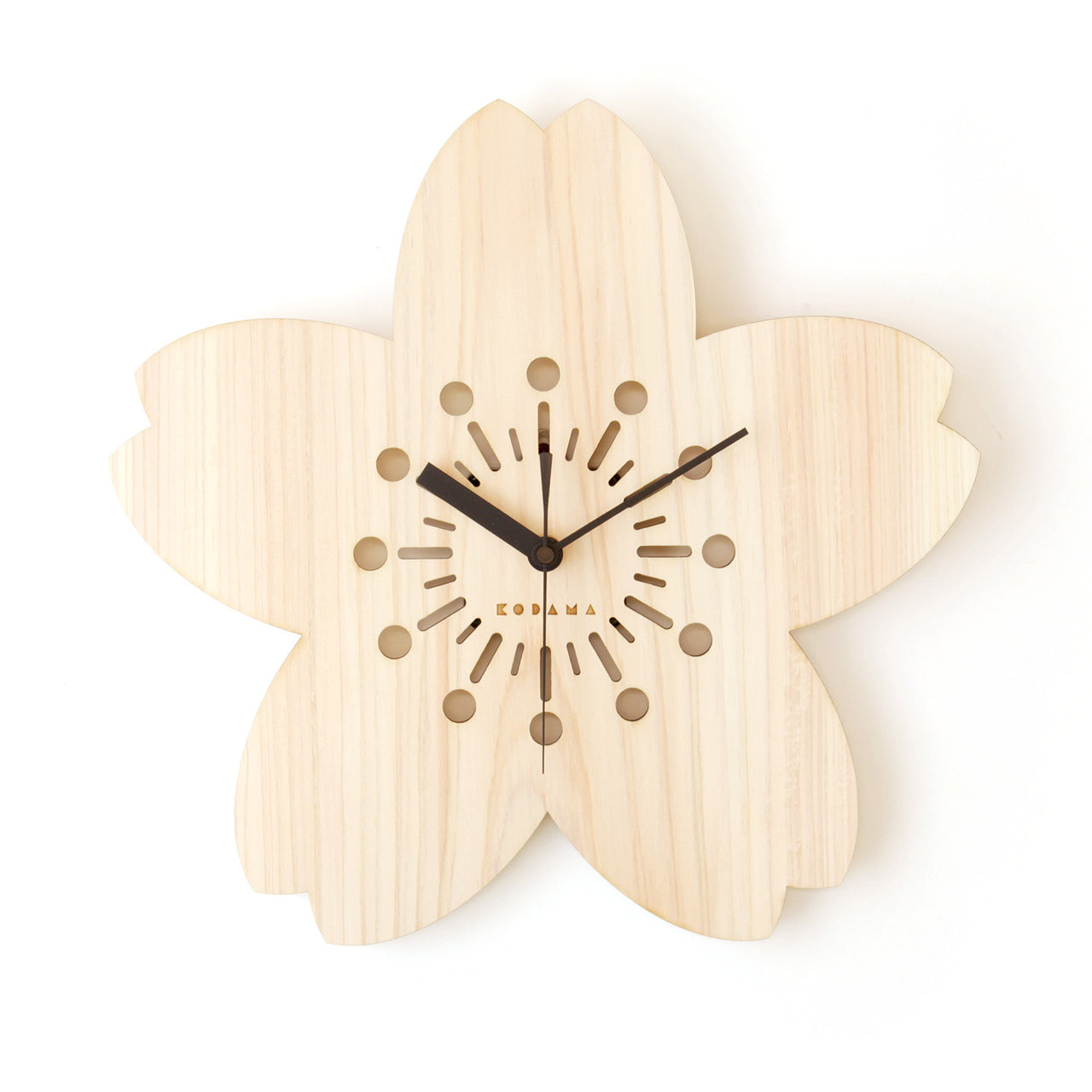 ヒノキに繊細な透し彫りを施した上品でシンプルな掛け時計です。
