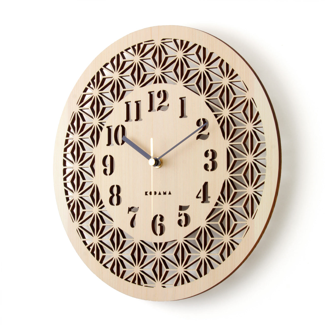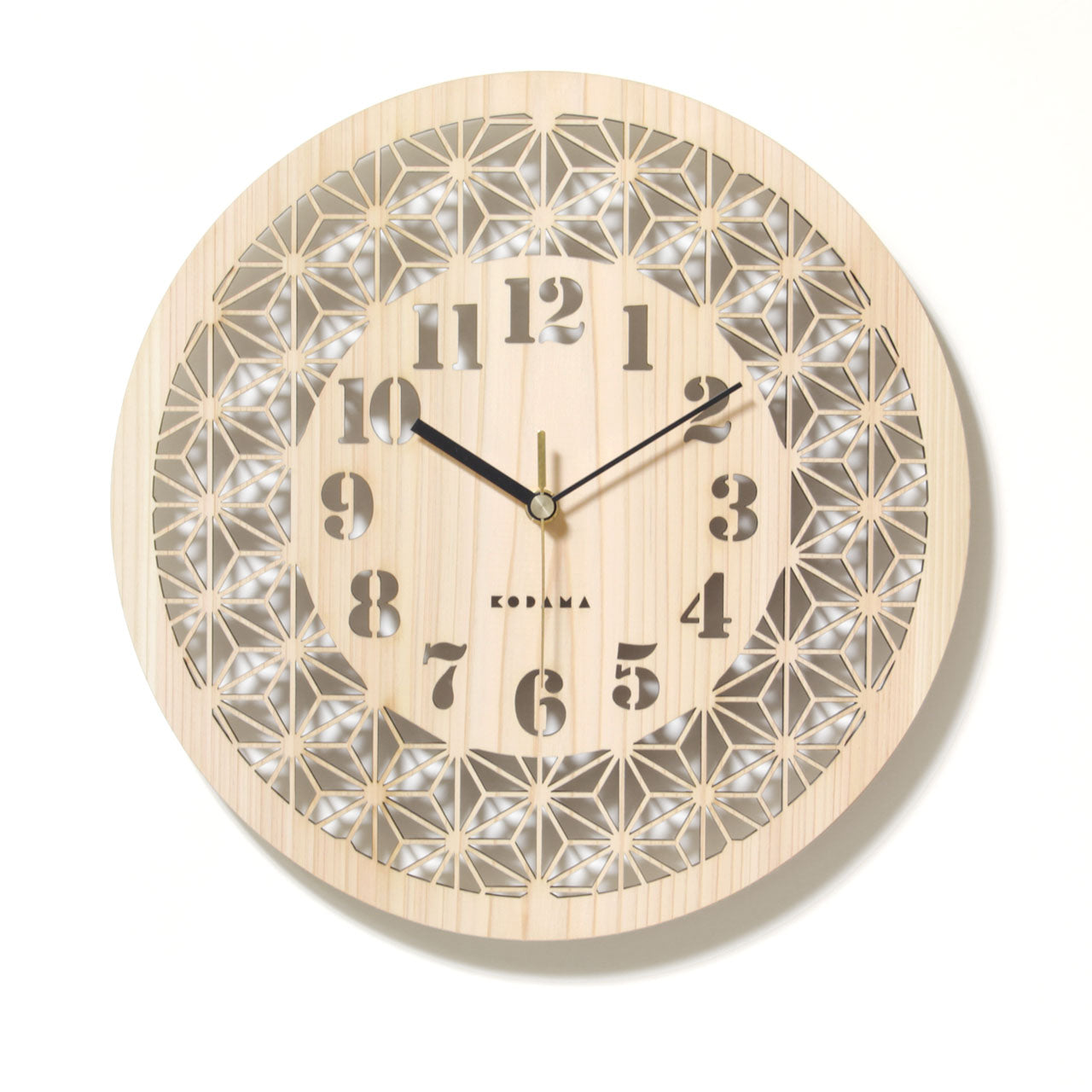 ヒノキに繊細な透し彫りを施した上品でシンプルな掛け時計です。
