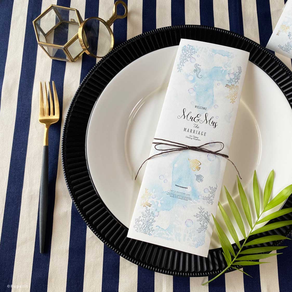 夏挙式や海辺のリゾート挙式にピッタリの席次表