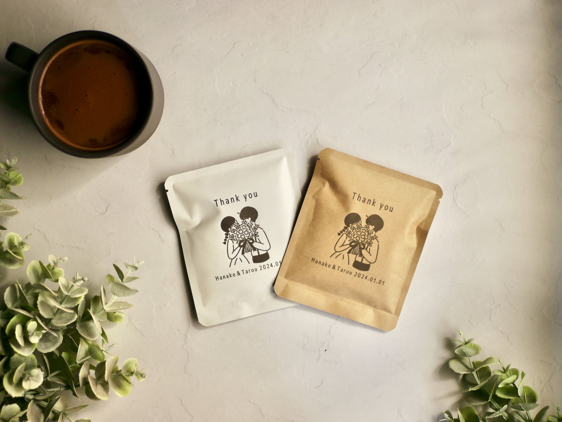 【オリジナルパッケージ】ココア専門店「大人のココア」ドリップパック「花束を抱えたカップル」【プチギフト オリジナル ココア】 【結婚式 プチギフト 飲み物】