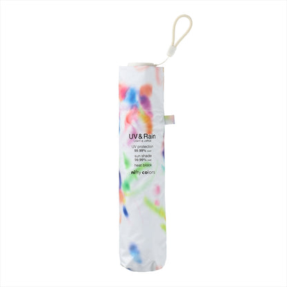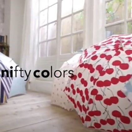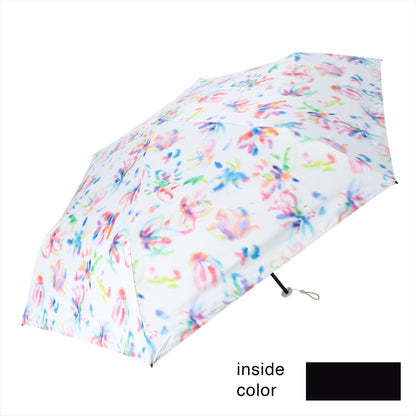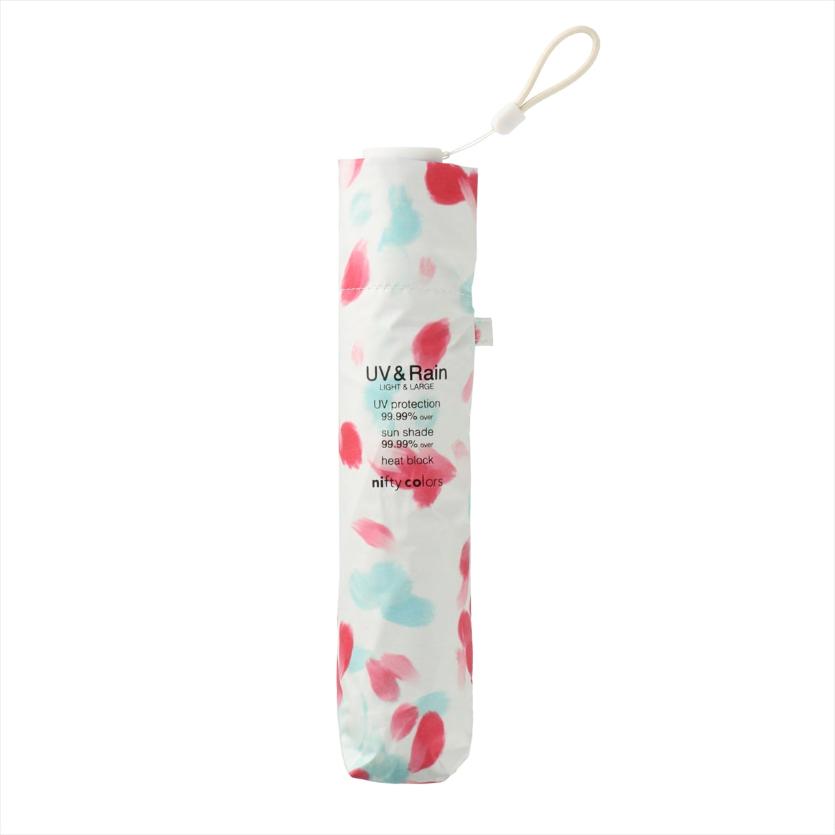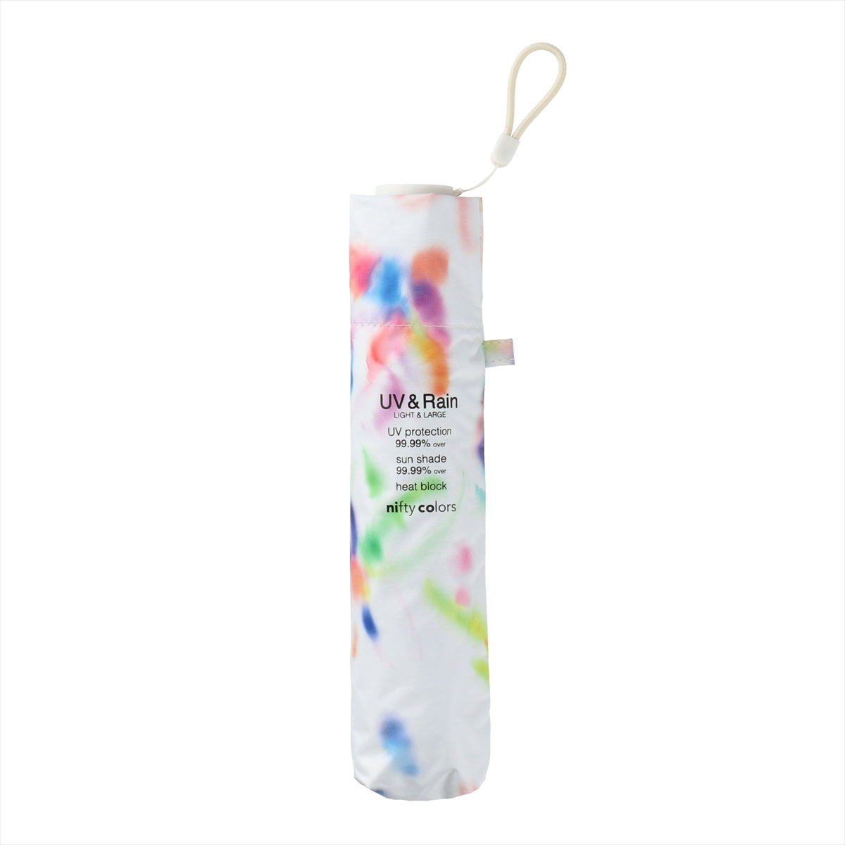持つだけでハッピーで自由になれそうです。手元とストラップを白系で統一してクリーンで爽やかな雰囲気です。裏側のポリウレタン加工の色はブラックになっているので、表の柄を引き立てつつ光を吸収し日陰を作る効果があり、強い日差しに最適です。