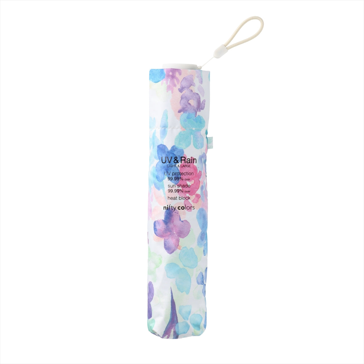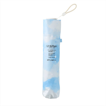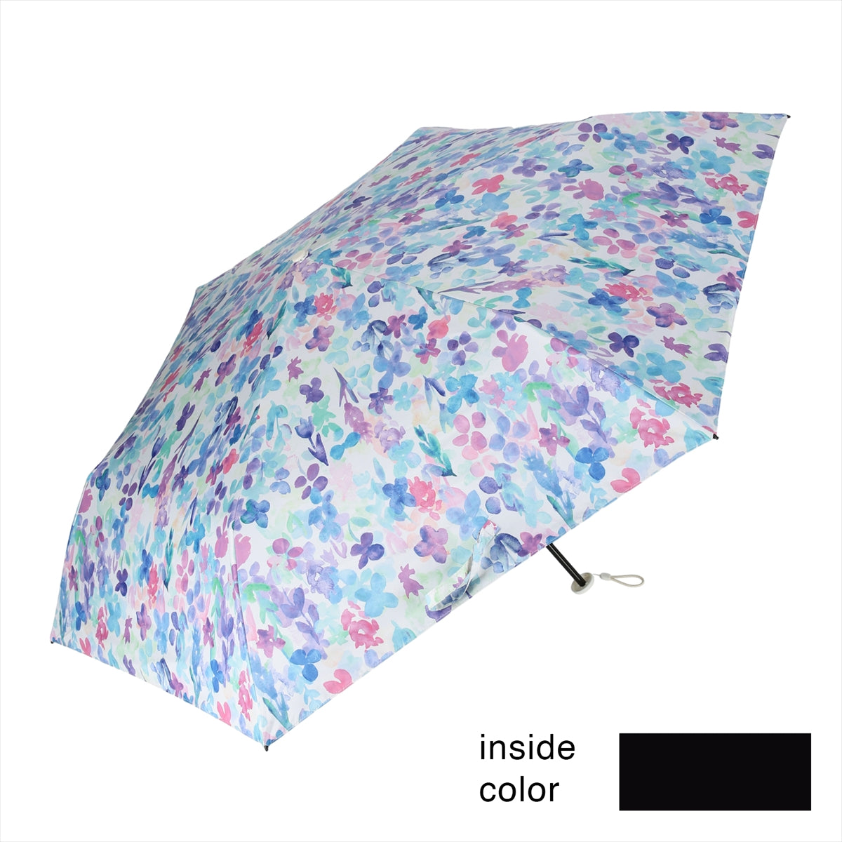 ブルーを基調としているのでスッキリと涼しげな色調になっています。手元とストラップを白系で統一してクリーンで爽やかな雰囲気です。裏側のポリウレタン加工の色はブラックになっているので、表の柄を引き立てつつ光を吸収し日陰を作る効果があり、強い日差しに最適です。